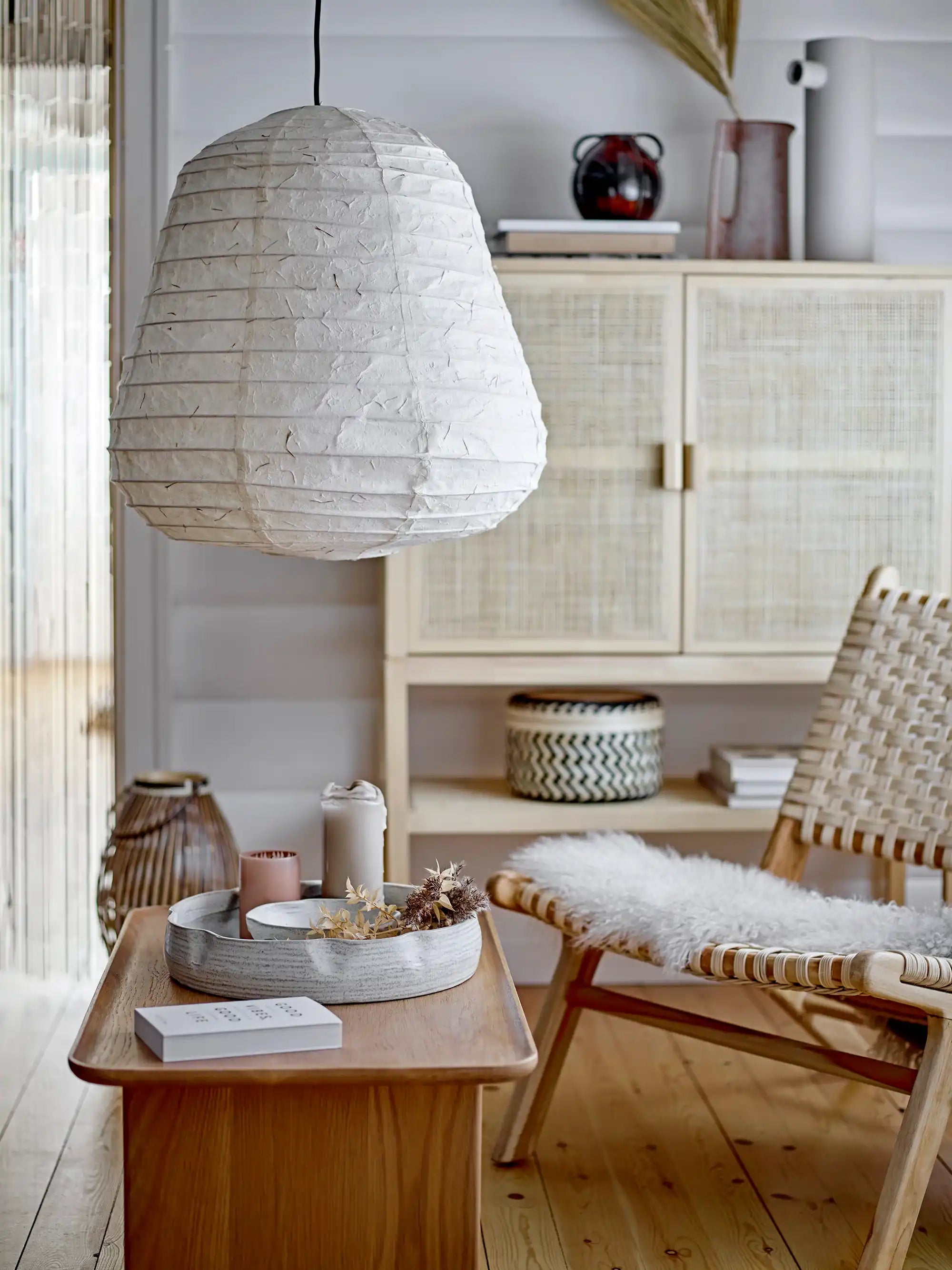 Waarom je deze hanglamp wilt hebben: Met de Leena hanglamp creëer je direct een warme, uitnodigende sfeer in huis. Het organische ontwerp zorgt voor een eigentijdse look die perfect past bij een Scandinavisch interieur en die elke ruimte extra karakter geeft.