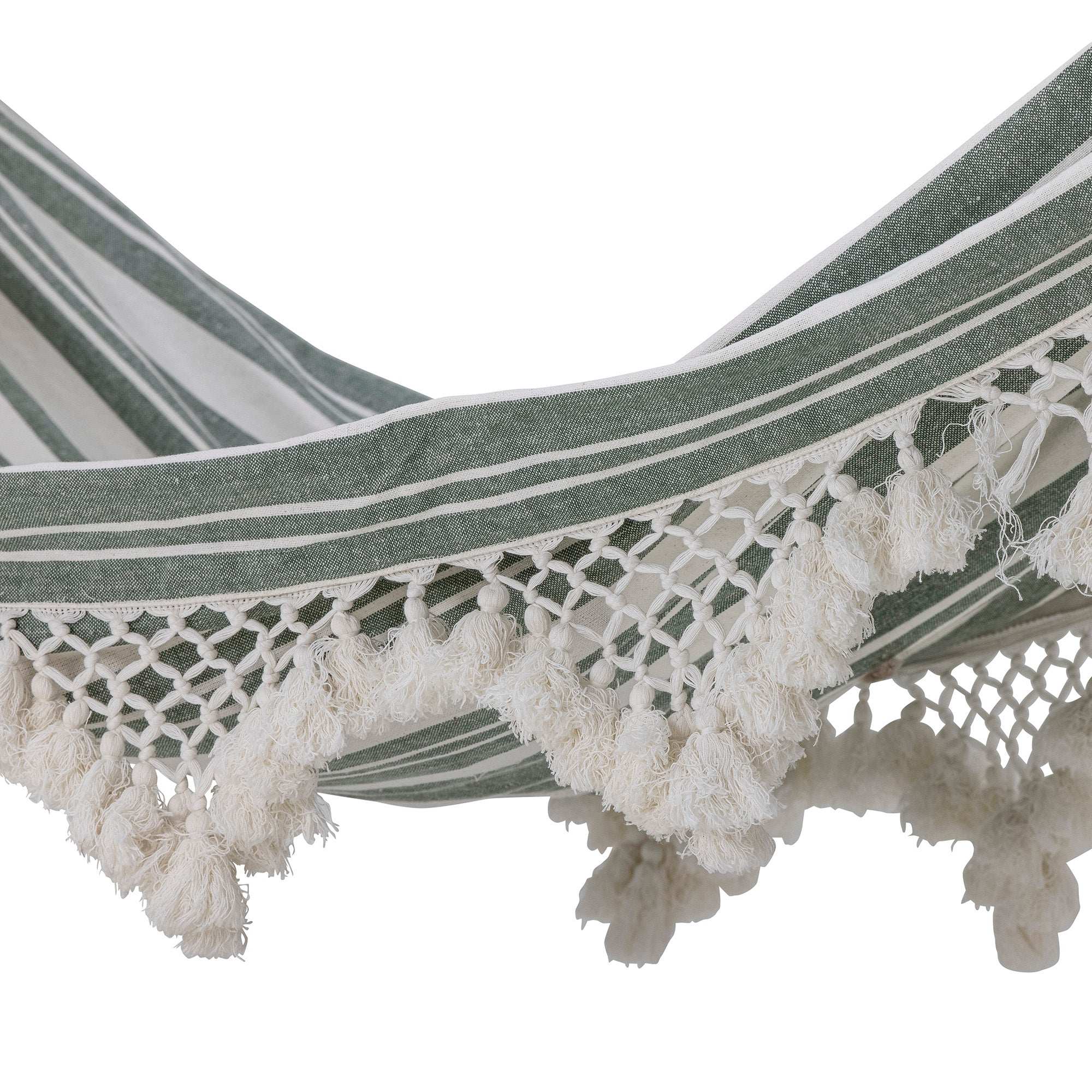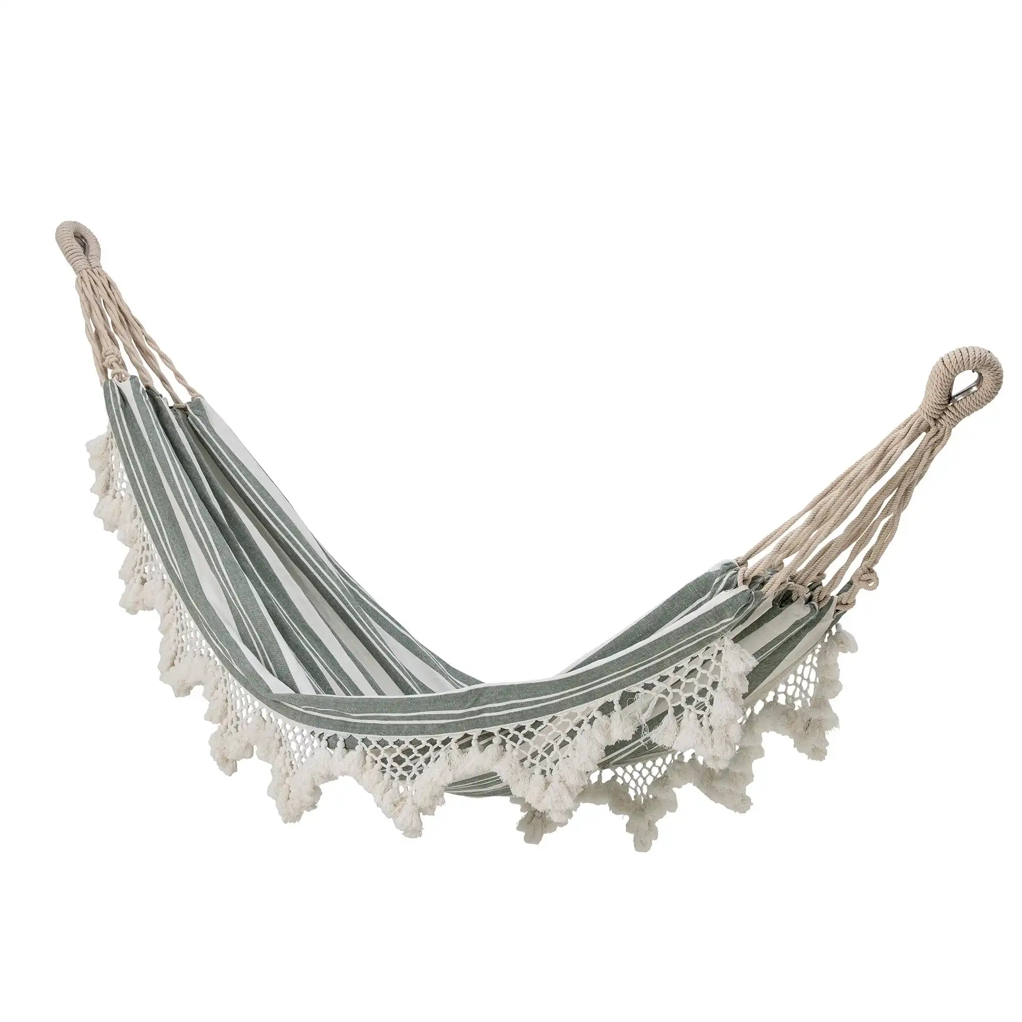 Waarom je deze hangmat wilt hebben: Zin in ultieme ontspanning in je tuin? De groene katoen hangmat van Cruz brengt meteen dat ontspannen vakantiegevoel in huis. Door het frisse groene kleurenpalet en de speelse details aan de rand wordt elk zonnig moment buiten nog specialer.