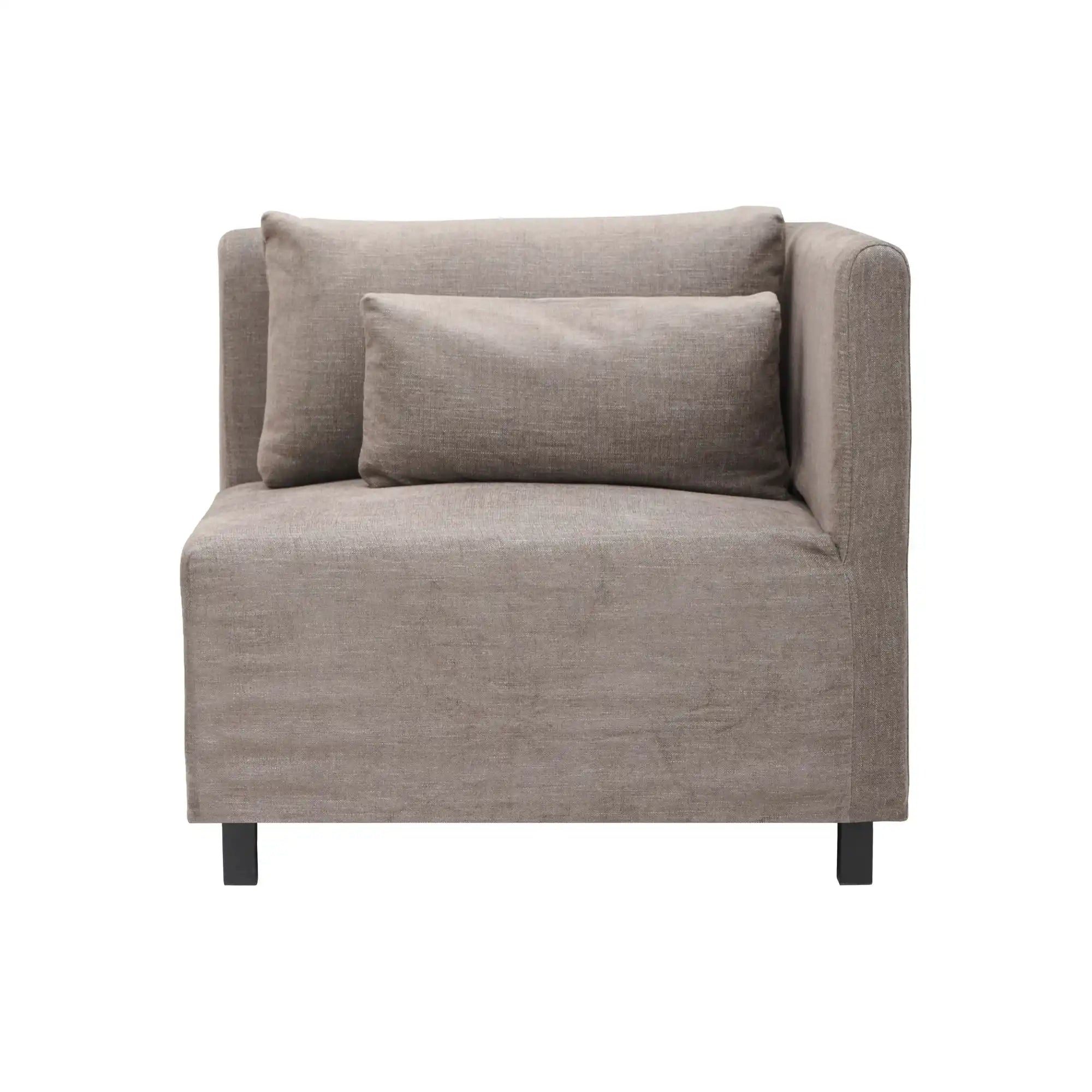 Dit hoekelement uit de Hazel Night-serie nodigt uit tot ontspannen. Met zijn rustige grijsbruine tint en ingetogen design past het moeiteloos in elke moderne woonkamer. Gebruik het als losse zitplek of als onderdeel van jouw modulaire bank — de keuze is aan jou.