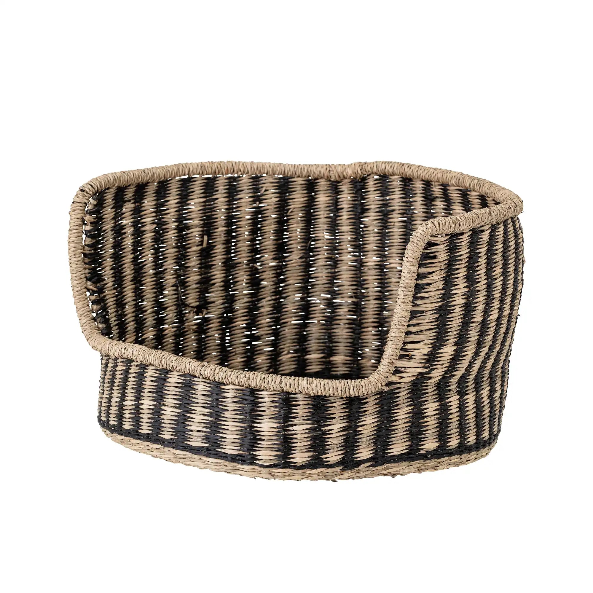 Details & materiaal: De mand is met de hand gevlochten van stevig zeegras en afgewerkt met subtiele zwarte accenten, wat zorgt voor een natuurlijke én luxe look. Dankzij de compacte afmetingen van 40 x 40 x 25 cm past deze hondenmand moeiteloos in elke kamer, terwijl het duurzame materiaal lang mooi blijft en eenvoudig te reinigen is met een droge doek.