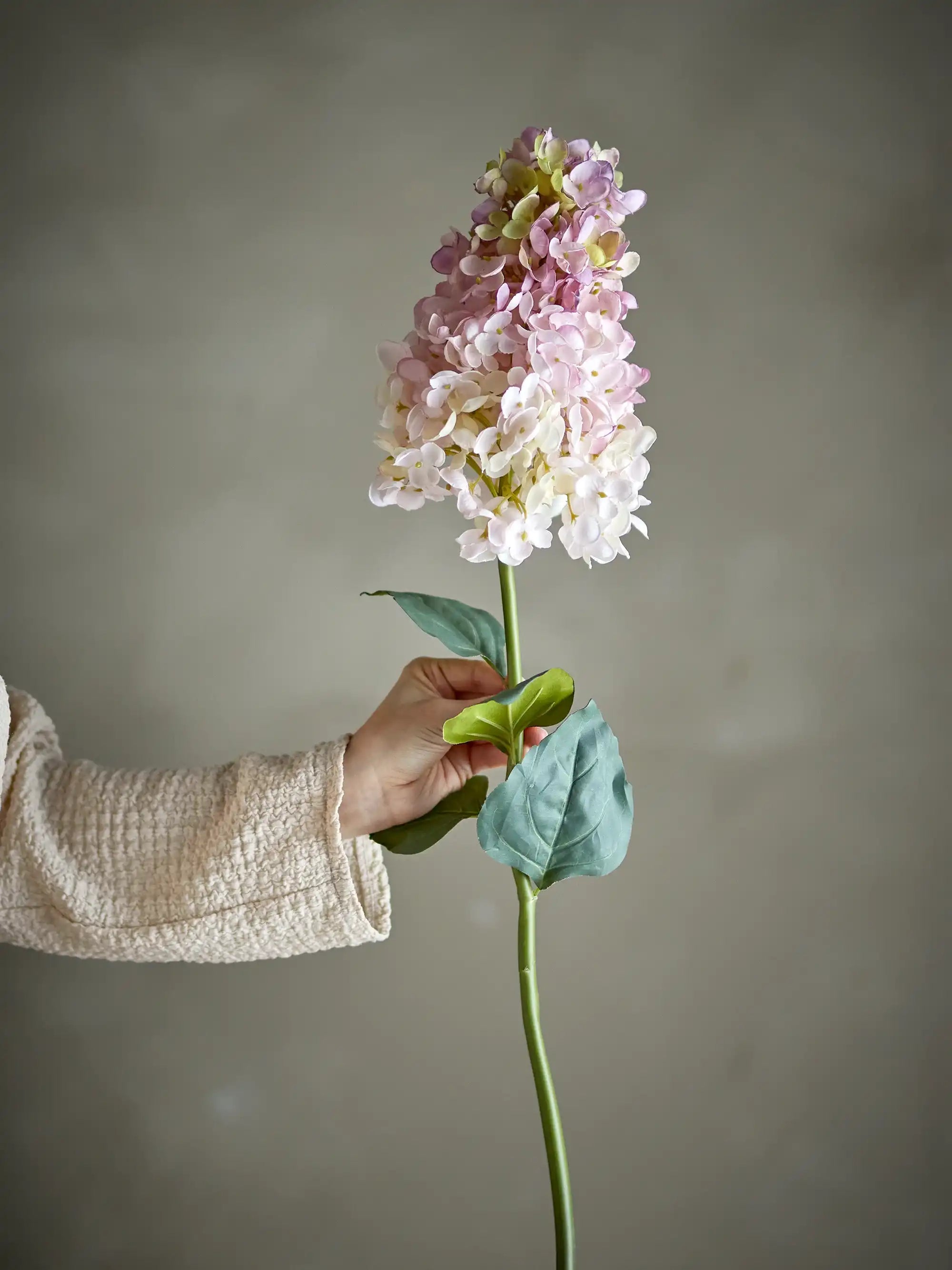 Gebruikstip: Zet de hortensia solo in een slanke vaas voor een serene look, of combineer met andere kunstbloemen voor een rijk boeket dat nooit verwelkt. Een stijlvolle keuze die je interieur ieder seizoen laat stralen.