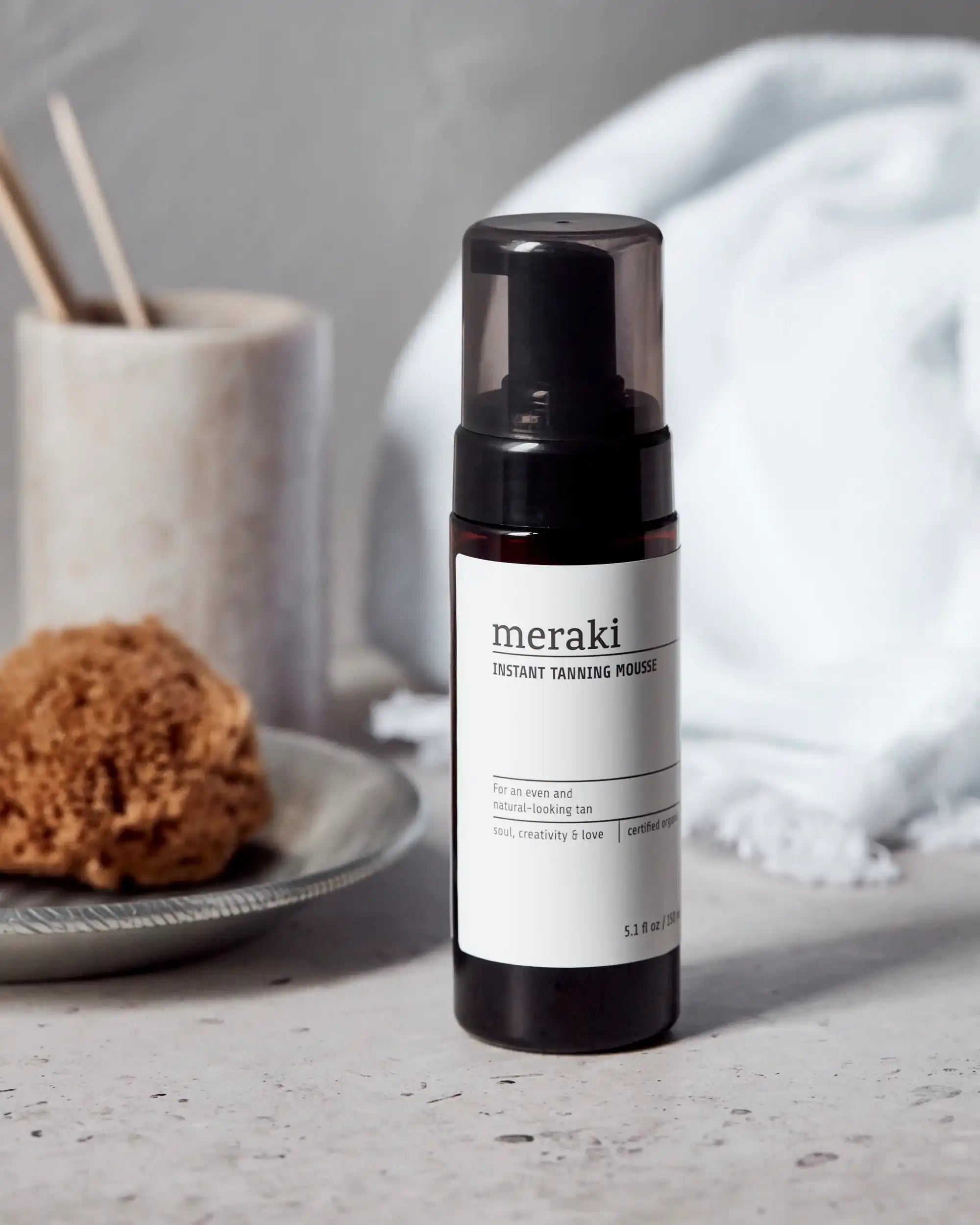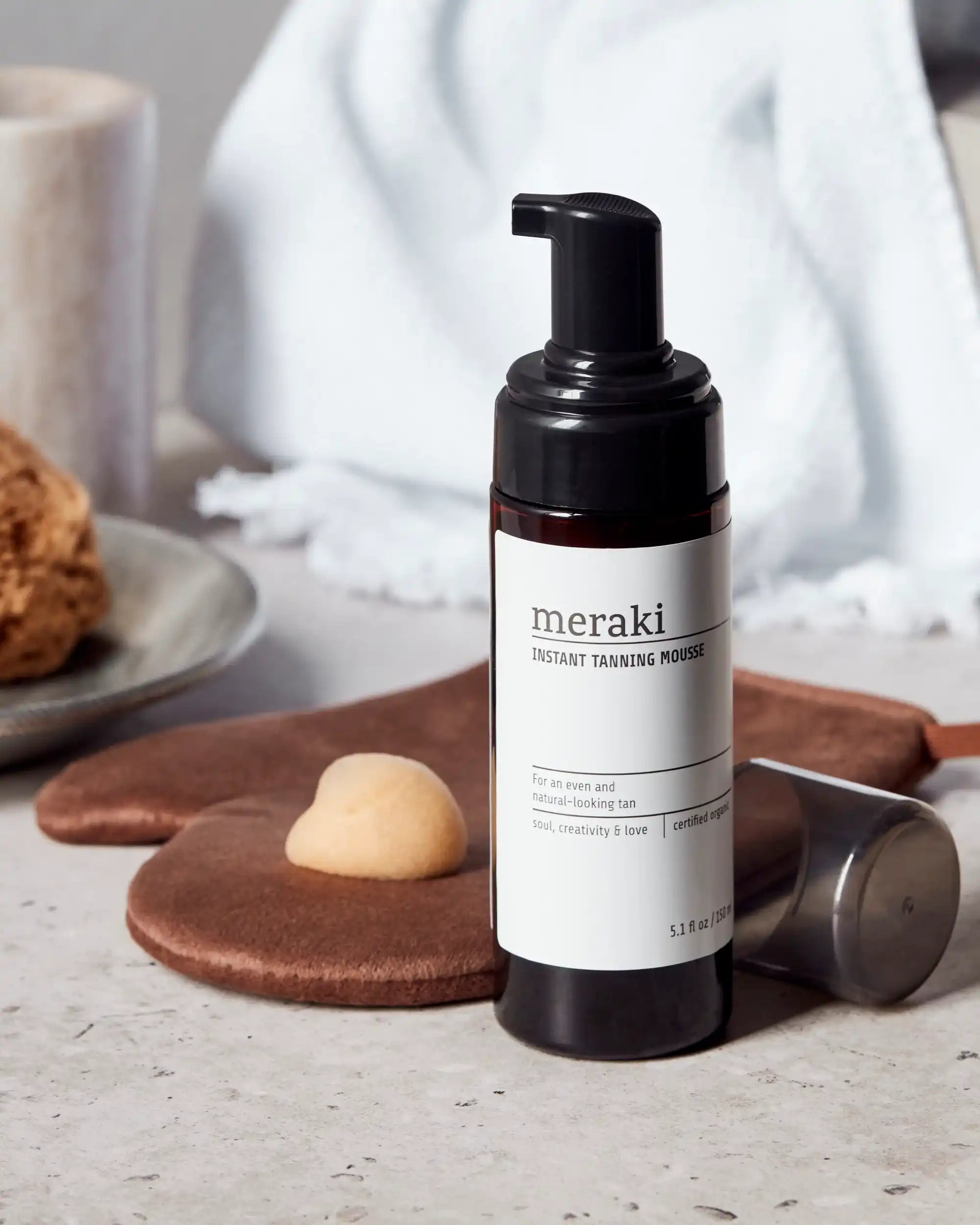 De mousse is biologisch gecertificeerd (Cosmos Organic) en bevat natuurlijke kleuring op basis van karamel. Dankzij verzorgende ingrediënten zoals aloë vera en glycerine blijft je huid zacht en gehydrateerd. De flacon heeft een hoogte van 17,5 cm en een diameter van 4,5 cm — compact genoeg voor in je badkamer of toilettas.