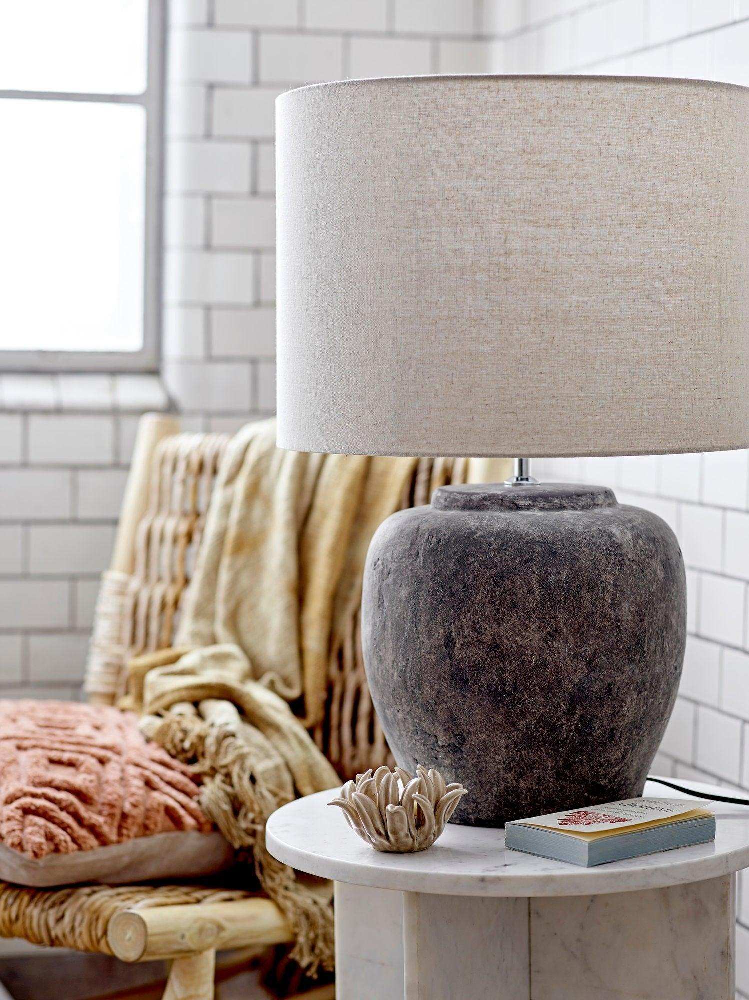 De Bloomingville Isabelle tafellamp grijs is een stijlvolle keuze voor wie houdt van een rustieke en vintage uitstraling. Met een robuuste aardewerken voet in een warme grijsbruine tint en een zachte linnen kap, creëert deze lamp een sfeervolle verlichting die perfect past bij diverse interieurstijlen. De Isabelle tafellamp is met zijn hoogte van 62 cm en een diameter van 44 cm ideaal voor een bijzettafel, dressoir of nachtkastje en voegt een uitnodigende, natuurlijke charme toe aan elke ruimte.