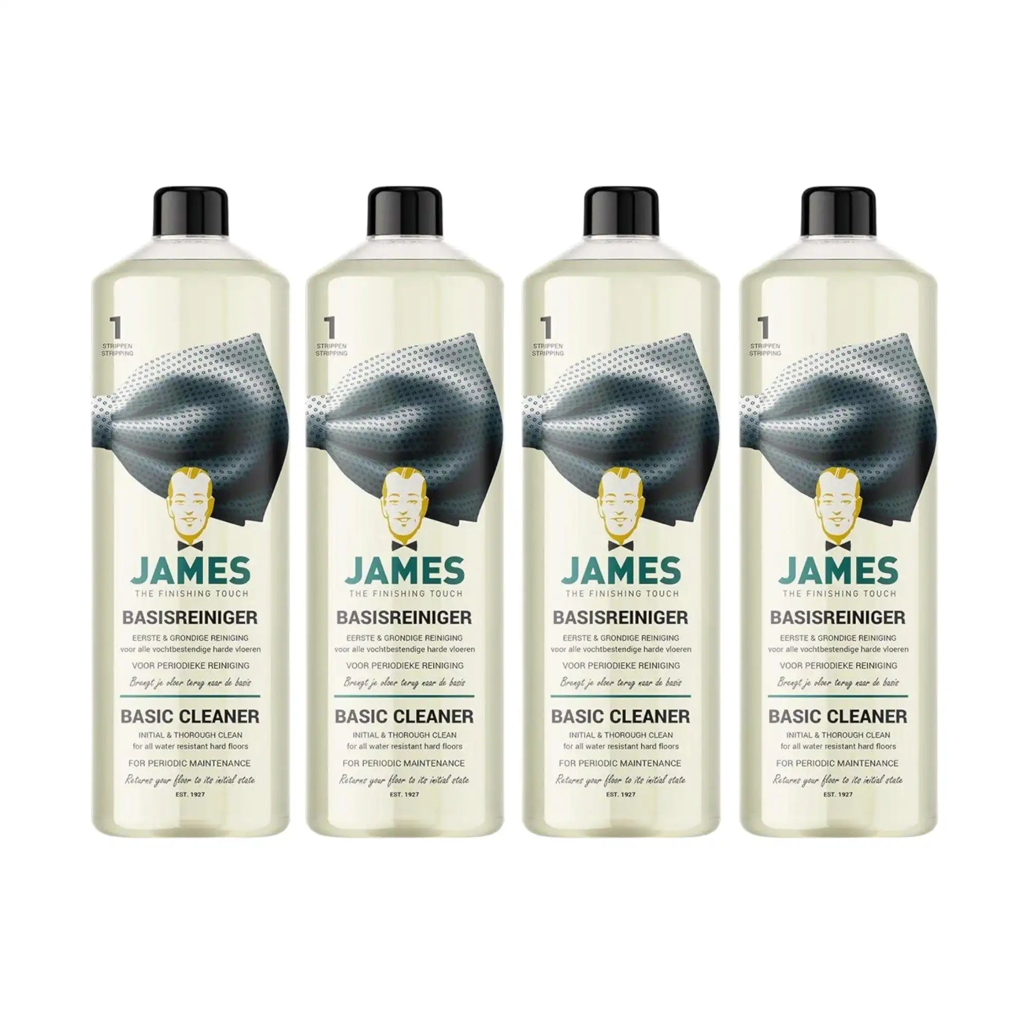 James Basisreiniger gebruik je om je vloer grondig en veilig te reinigen. Verdun de reiniger altijd volgens de aanwijzing op de verpakking. Breng het middel gelijkmatig aan met een dweil of mop en laat het kort inwerken. Daarna dweil je de vloer schoon met helder water om het losgekomen vuil te verwijderen. Laat de vloer goed drogen voordat je er weer op loopt of een onderhoudsproduct aanbrengt.