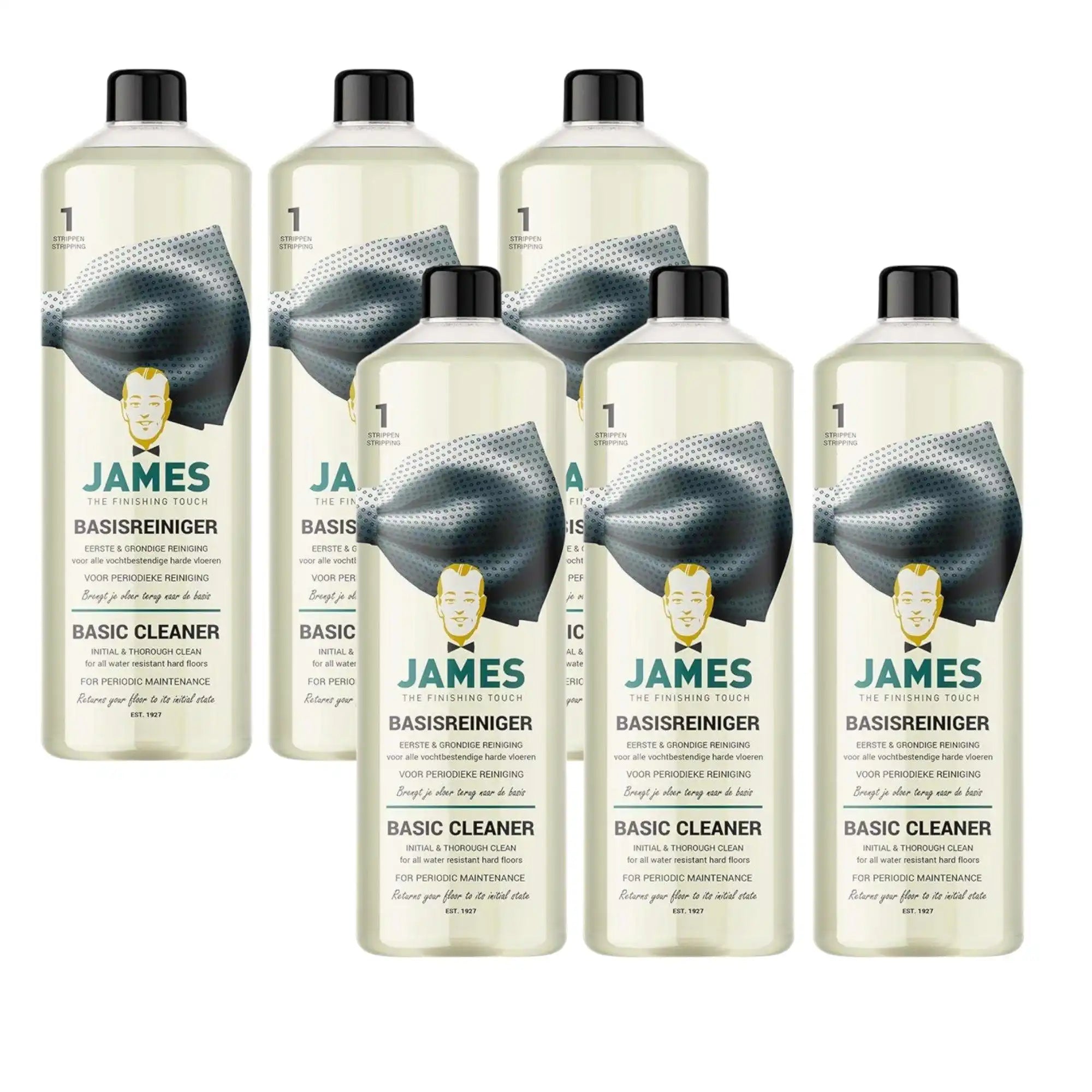 Sta je klaar om je vloeren te laten schitteren als nooit tevoren? De James Basisreiniger staat aan jouw zijde om elke vochtbestendige harde vloer in je huis weer op te frissen. Van laminaat tot linoleum en van keramische tegels tot kunststeen, deze krachtpatser neemt alles onder handen. Met zijn vermogen om hardnekkige vervuiling en oude beschermlagen moeiteloos weg te strippen, geef je je vloeren een compleet nieuw leven. Vergeet na deze diepe reiniging niet de vloer een finishing touch te geven met een beschermend James product voor een langdurig prachtig resultaat.