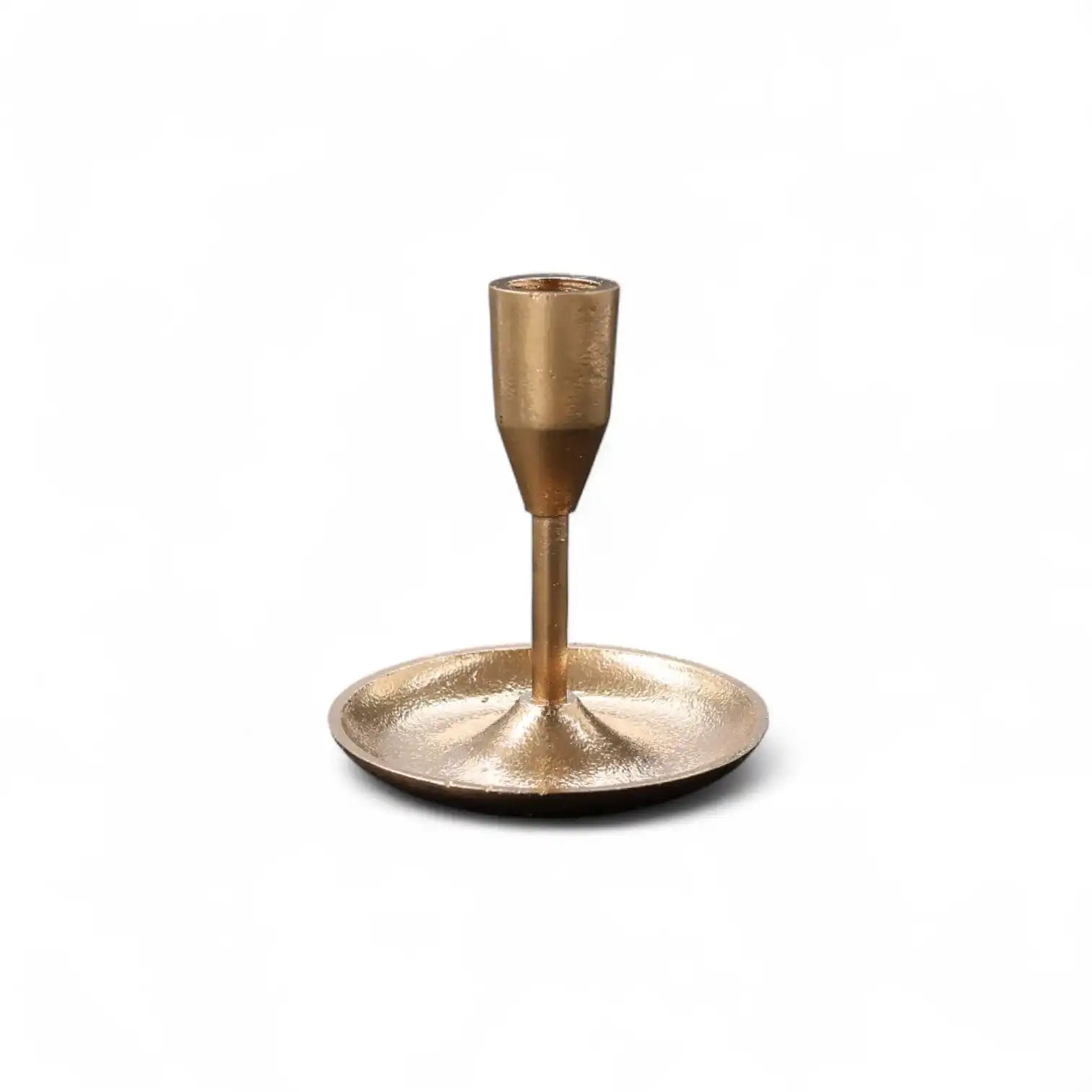 Breng warmte en glans in huis met Kandelaar Aurora. De gouden afwerking en het ingetogen design geven elk hoekje meteen sfeer. Dankzij de compacte maat zet je ’m net zo makkelijk solo op een vensterbank als in een groepje op een tray voor een hotel chique look.