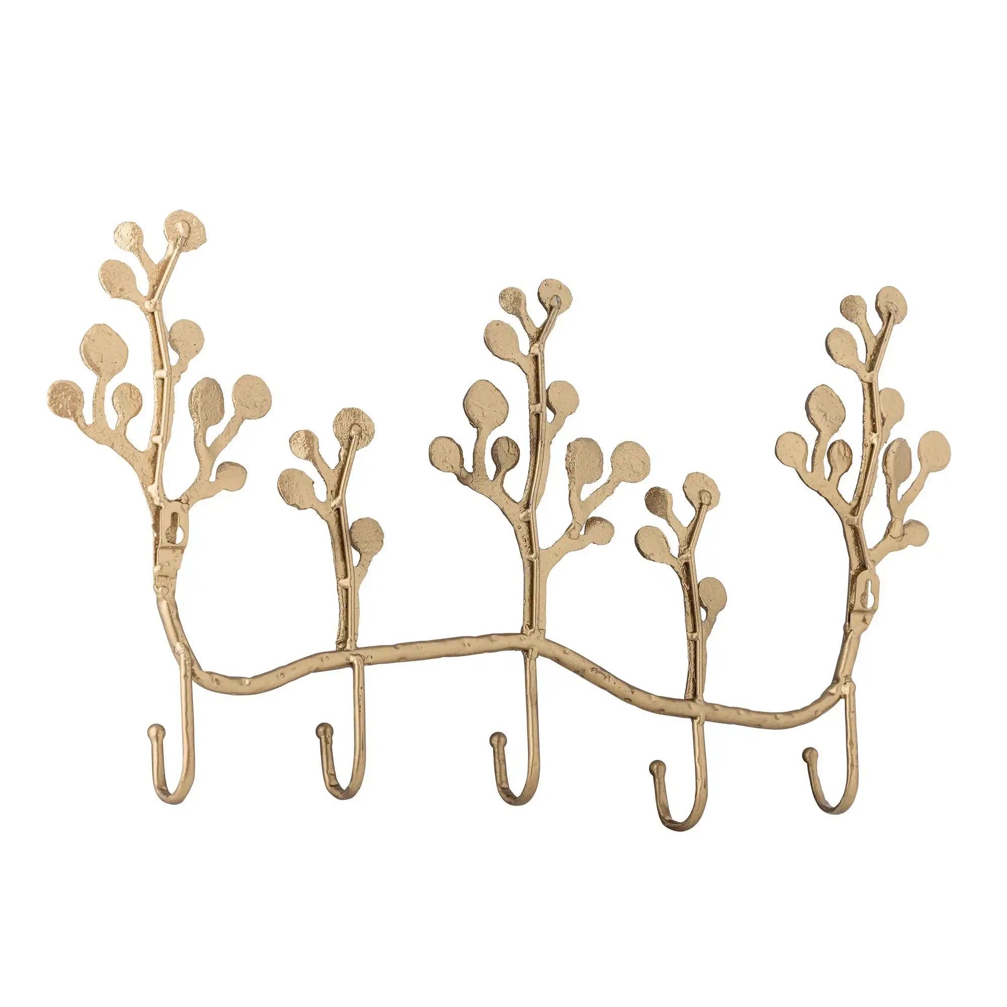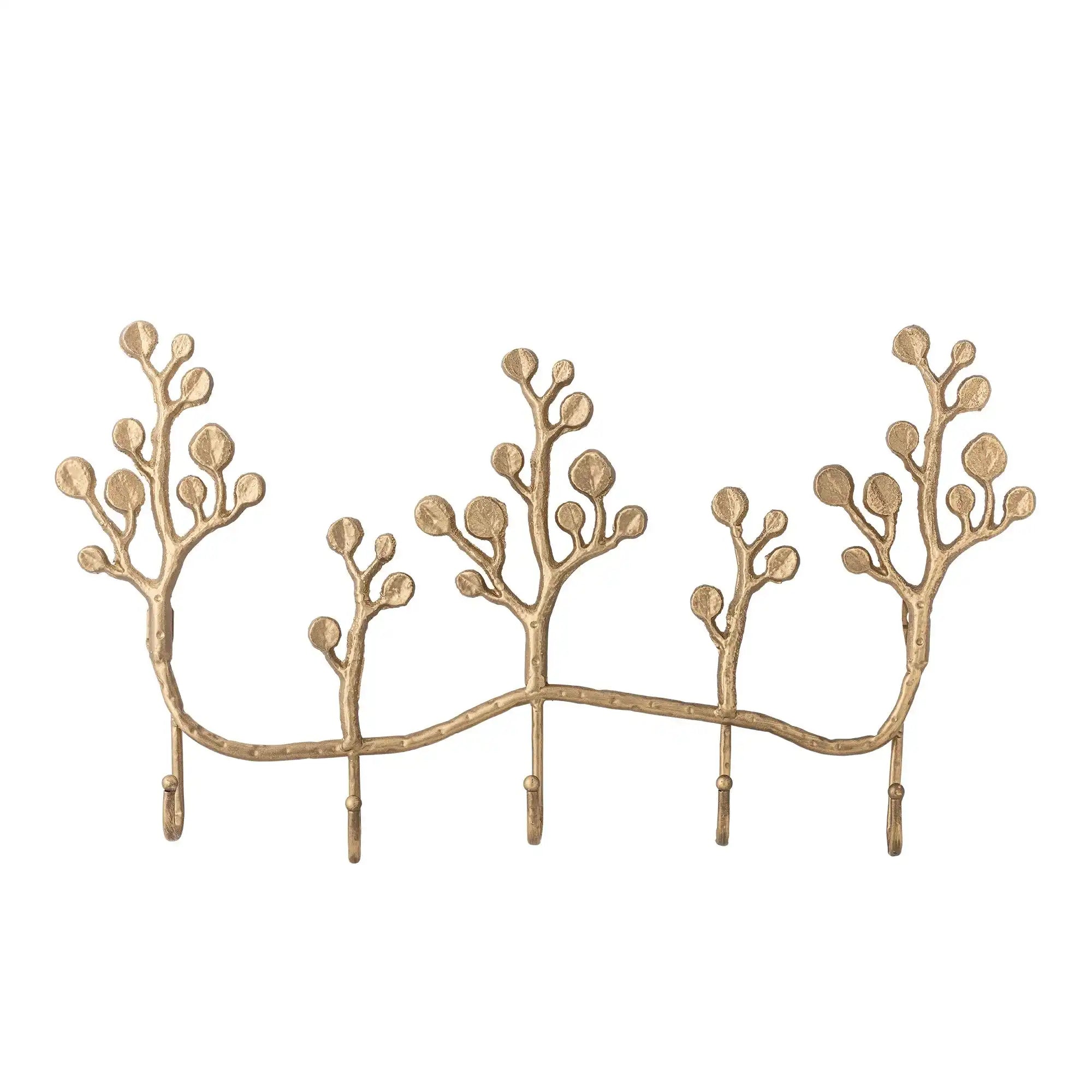 Details & materiaal: Gemaakt van metaal met een messing finish en ontworpen als sierlijke takken. De afmetingen b × h × d 5 × 31.5 × 57 cm leveren een slank profiel op dat weinig ruimte inneemt, maar toch royaal ophangcomfort biedt dankzij de vijf haken. De subtiele rondingen voorkomen scherpe overgangen, waardoor je kleding soepel blijft hangen. De solide constructie voelt betrouwbaar aan en de warme messingtoon laat zich makkelijk combineren met hout, natuursteen en zachte texturen. Een stijlvol accent dat gebruiksgemak en vormgevoel samenbrengt.