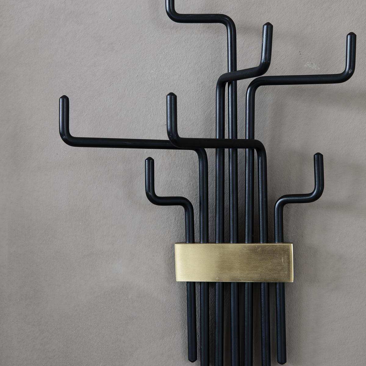 De kapstokhaak heeft een elegant zwart ontwerp met gouden accenten, waardoor het een tijdloze en stijlvolle uitstraling heeft. Het past perfect in elk huis, of je nu een modern, industrieel of klassiek interieur hebt.