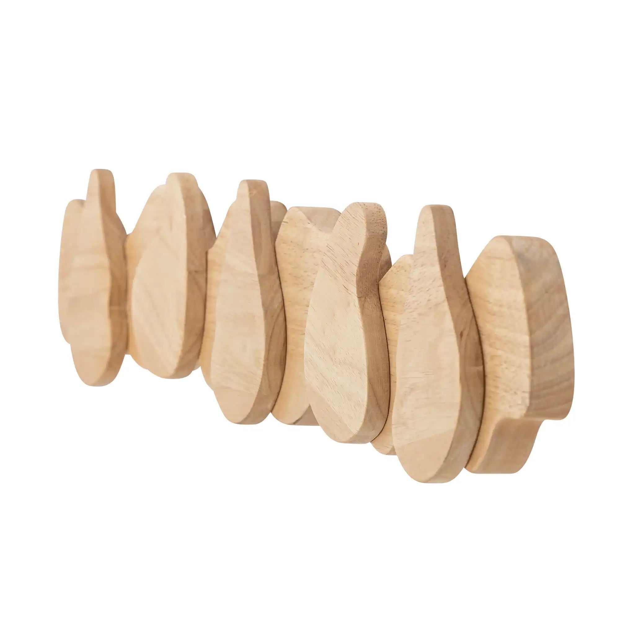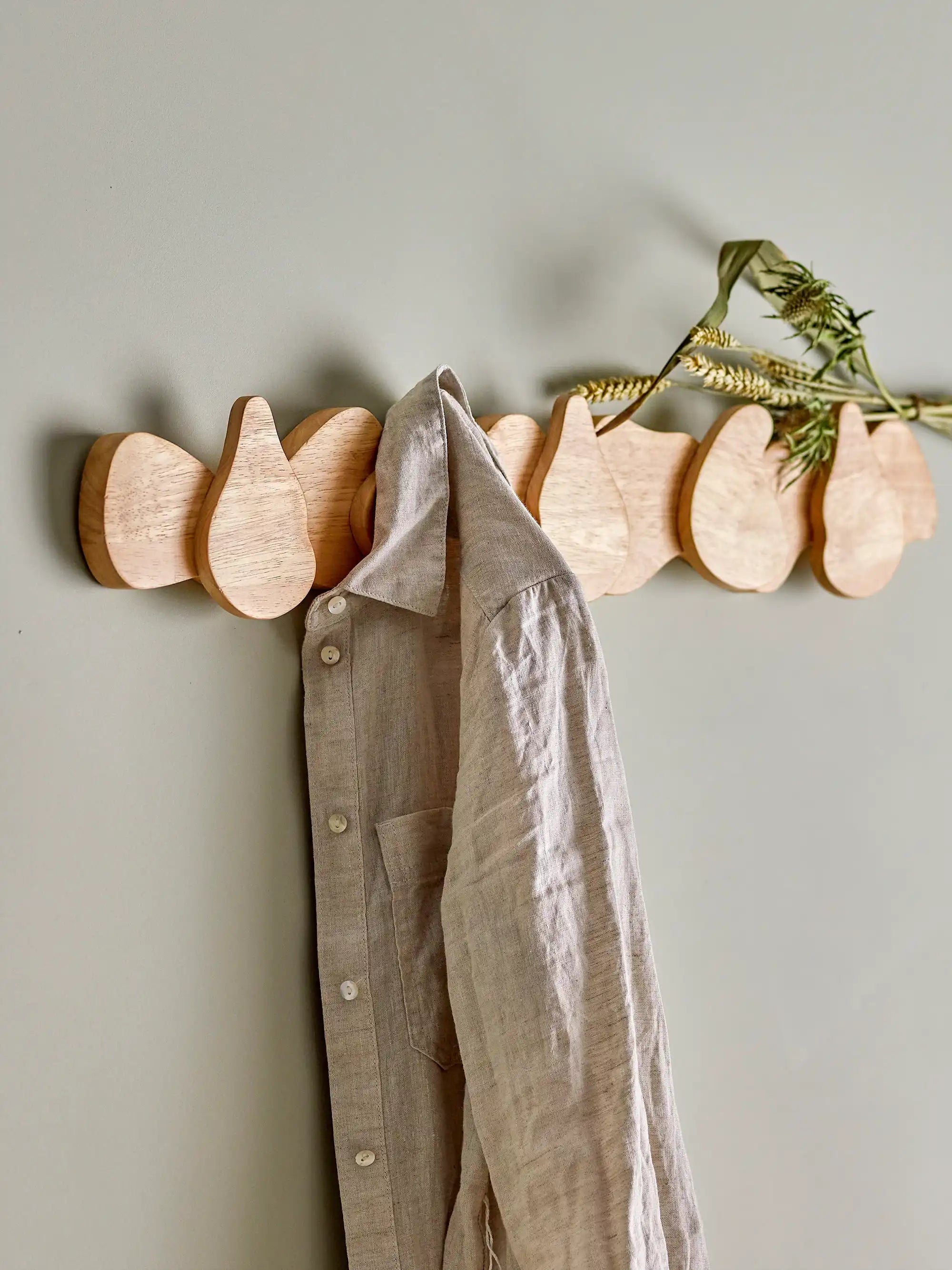 Mooi en praktisch materiaal: De kapstok is vervaardigd uit massief rubberhout in een lichte natureltint, waardoor elk exemplaar uniek oogt. Met zijn royale lengte van 70 cm en zes flinke haken biedt hij voldoende ruimte voor jassen, tassen of keukendoeken, zonder aan elegantie in te leveren.