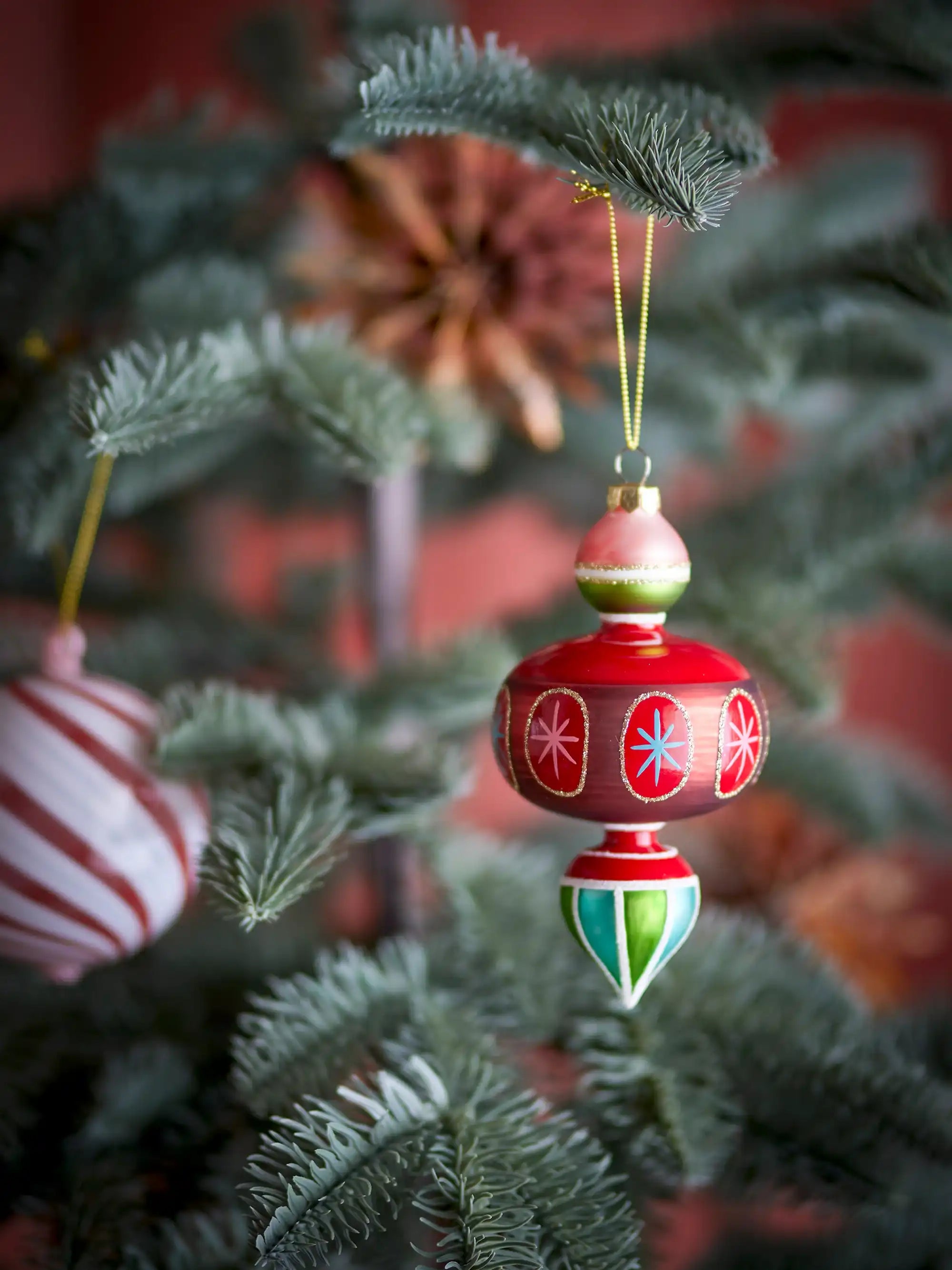 Waarom je deze kerstbal wilt hebben: Breng een feestelijke en persoonlijke sfeer in huis met deze unieke glazen kerstbal van Bloomingville. De warme rode tint in combinatie met verfijnde handgeschilderde details trekt direct de aandacht en laat je boom schitteren met Scandinavische elegantie.