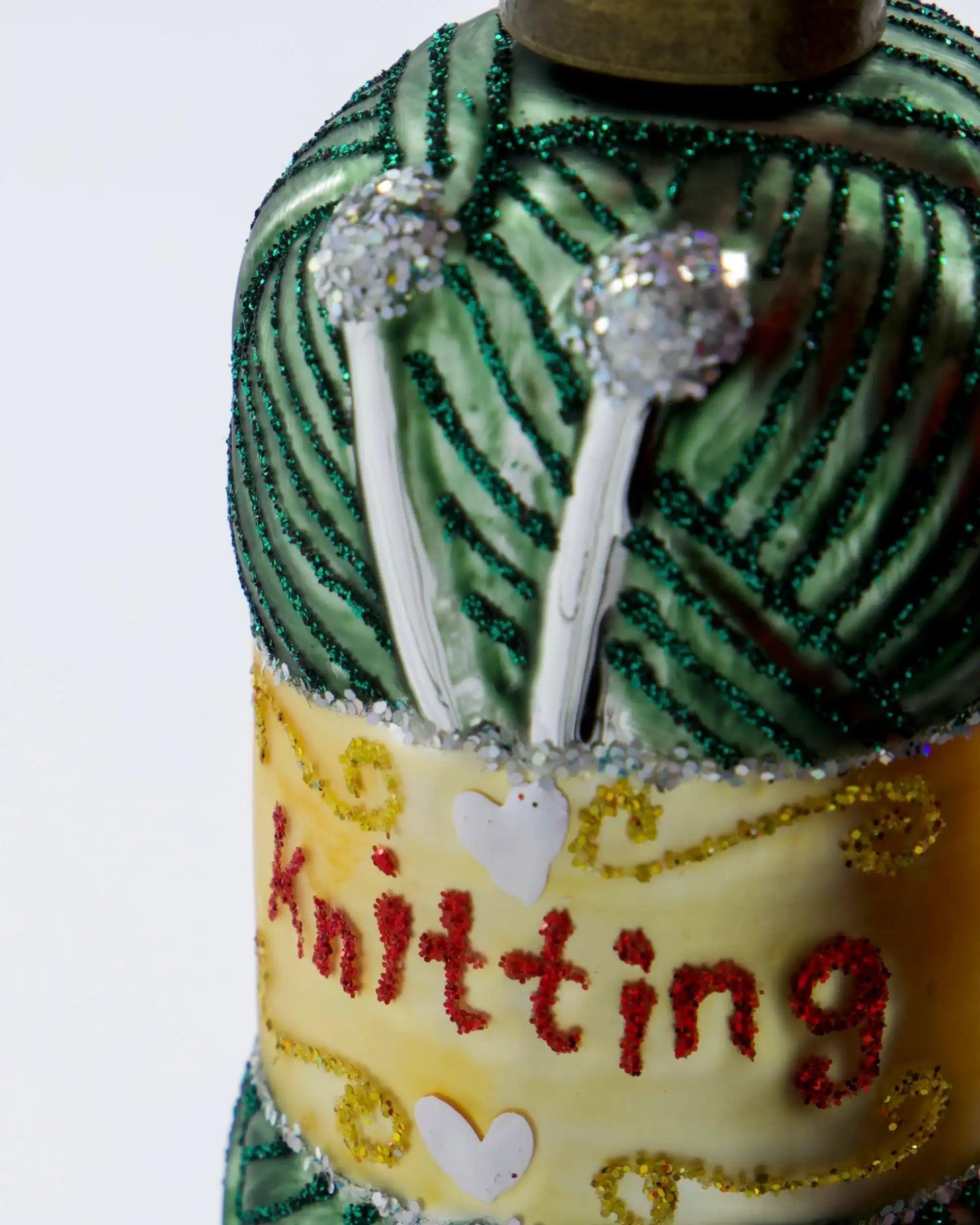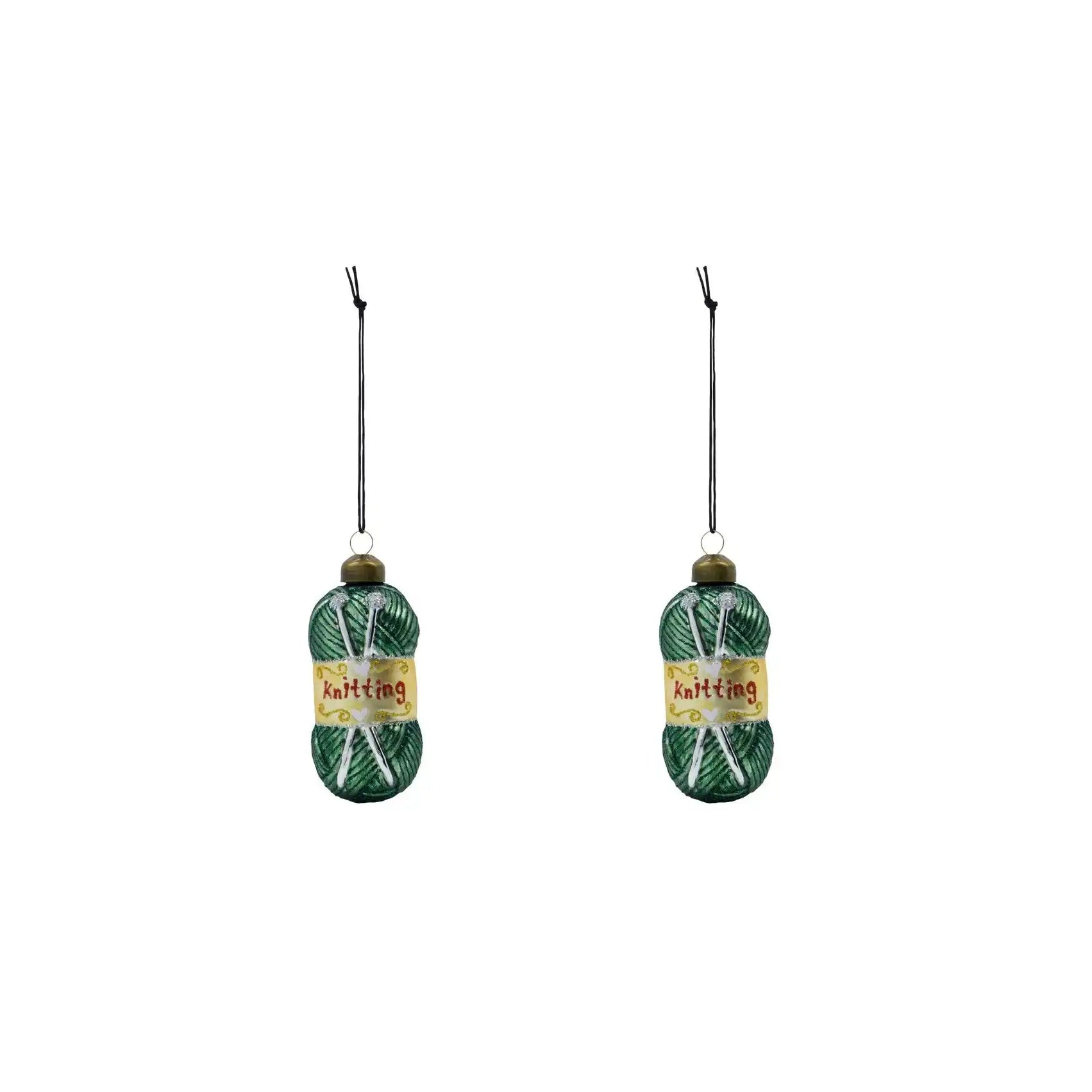De set bestaat uit twee ornamenten, elk zorgvuldig met de hand geblazen uit glas. De kerstballen stellen bolletjes garen met breinaalden voor en zijn afgewerkt met levendig groene glitteraccenten. Ze zijn 10 cm hoog en hebben een diameter van 4,5 cm – een ideale maat voor zowel kleine als volle kerstbomen. Door het gebruik van kunststof en aluminium zijn ze verrassend licht van gewicht.