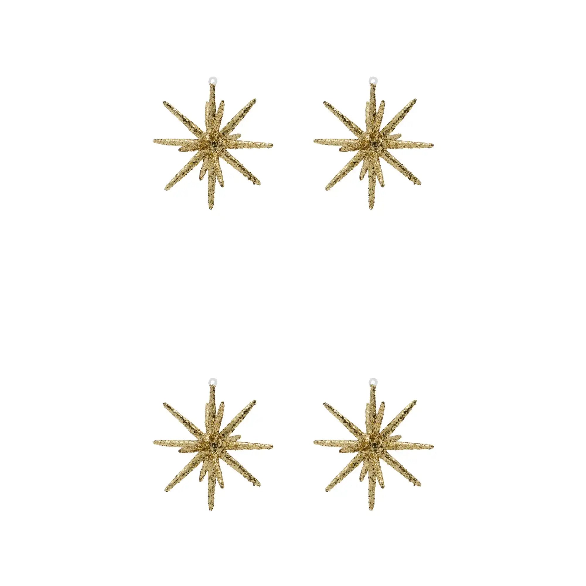 Kerstster Spike bruin glitter glas groot - 4 stuks