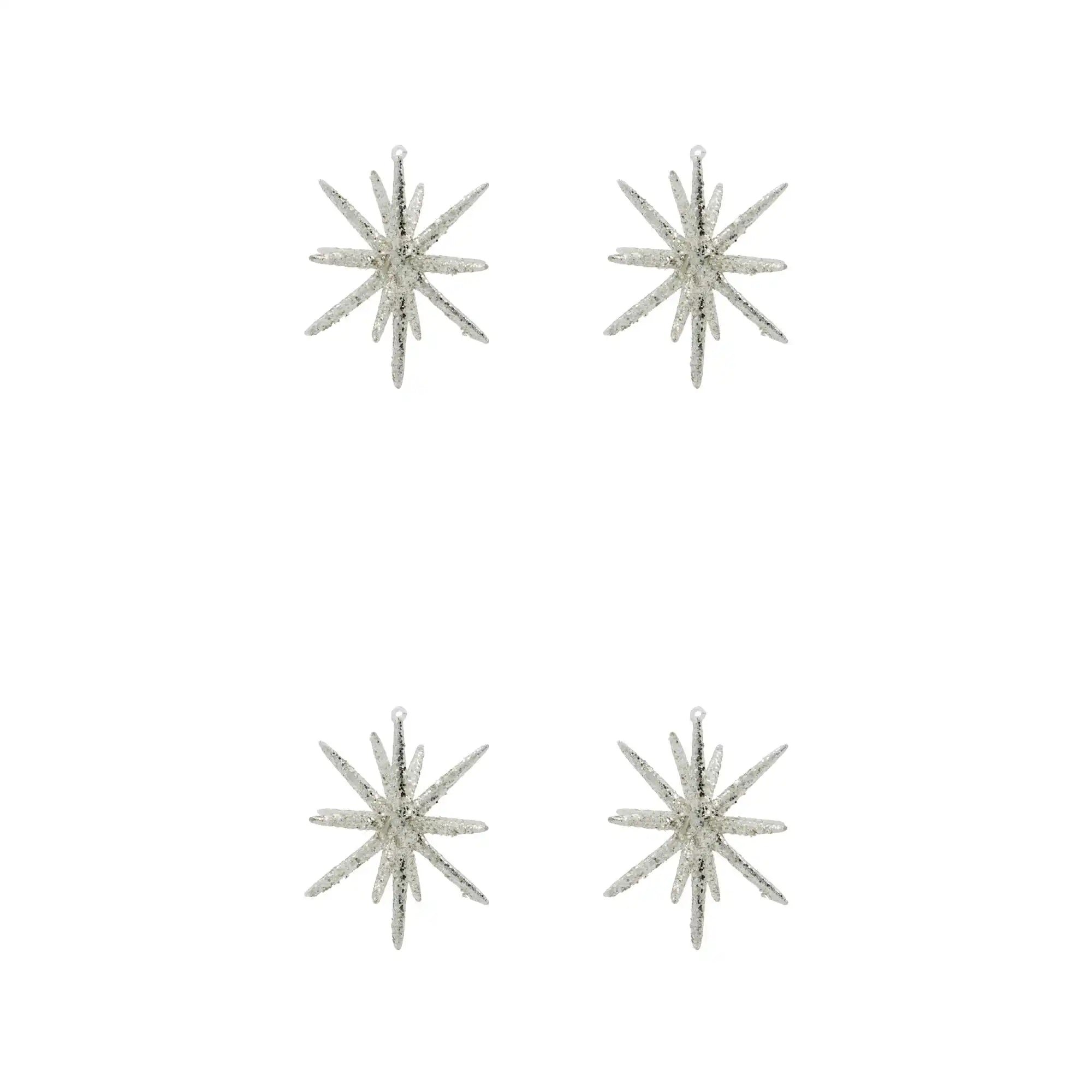 Kerstster Spike zilver glitter glas groot - 4 stuks