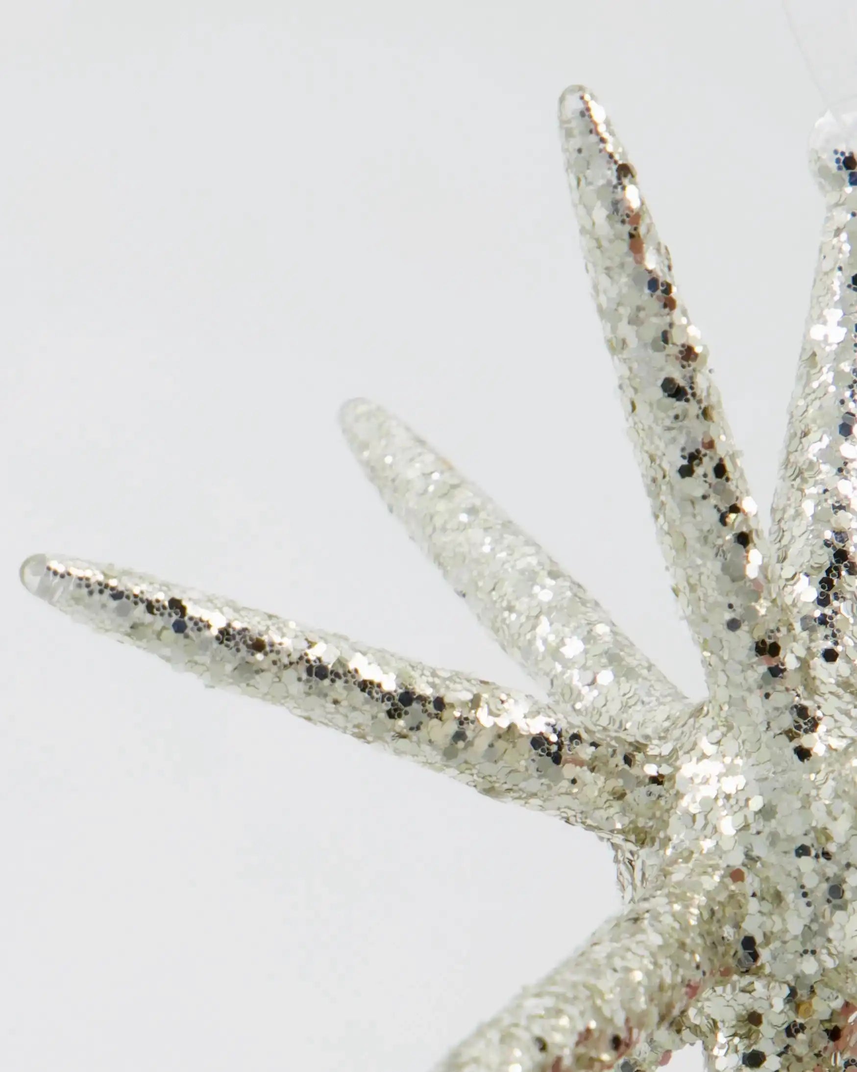 Elke ster is gemaakt van glas en afgewerkt met fijne zilveren glitters die het licht prachtig weerkaatsen. De authentieke vorm geeft een klassieke uitstraling, terwijl het sprankelende oppervlak zorgt voor een moderne twist. Met een diameter van 12 cm vallen ze mooi op, zowel in de boom als in een krans of op tafeldecoratie.