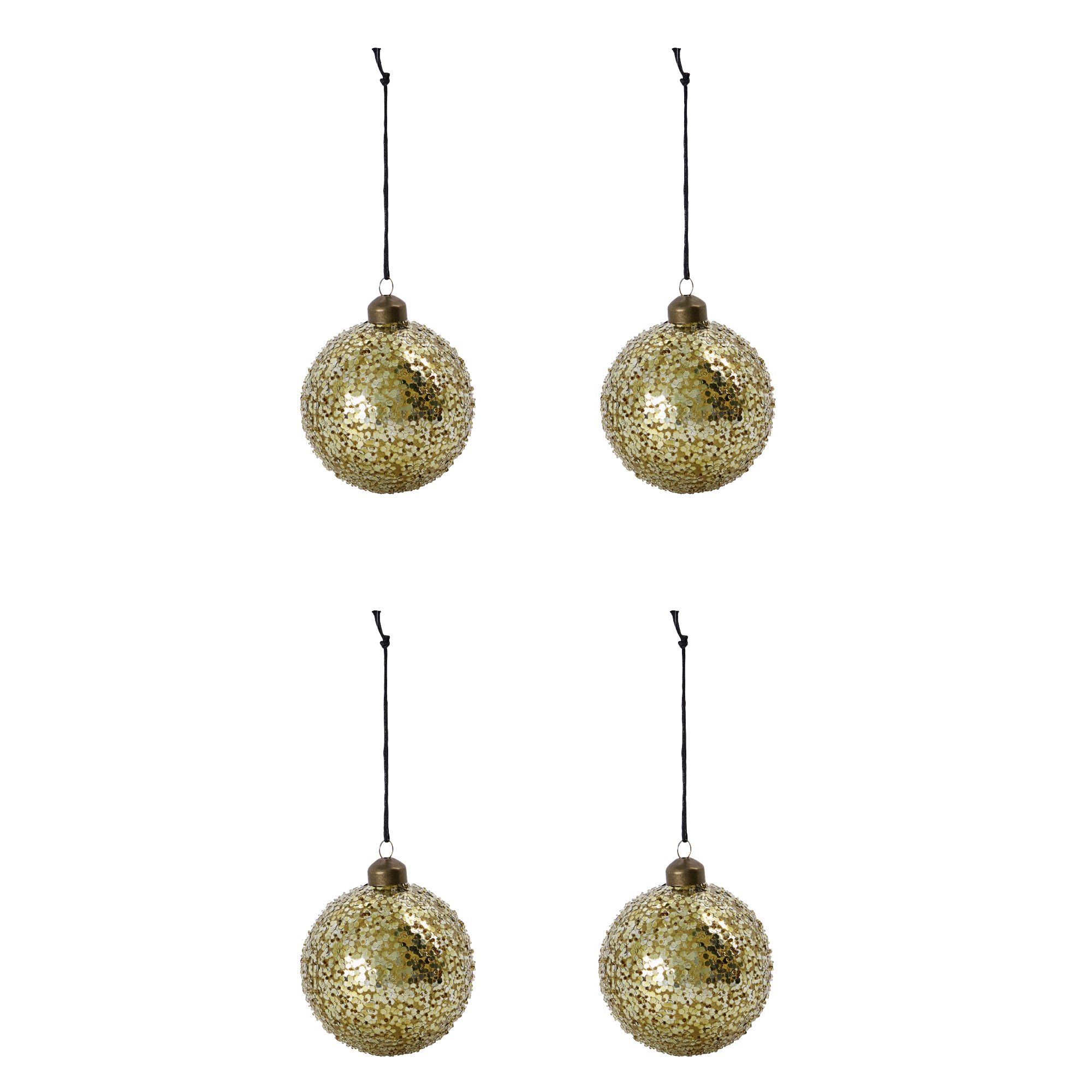 Door de combinatie van metaalachtige details en het zachte goud krijgen deze ballen een subtiele luxe uitstraling. Voeg ze toe aan je kerstboom tussen dennengroen en lichte tinten, of gebruik ze creatief in een schaal op tafel. Hun verfijnde design voegt rust en klasse toe aan de algehele kerstsfeer, hoe je ze ook toepast.