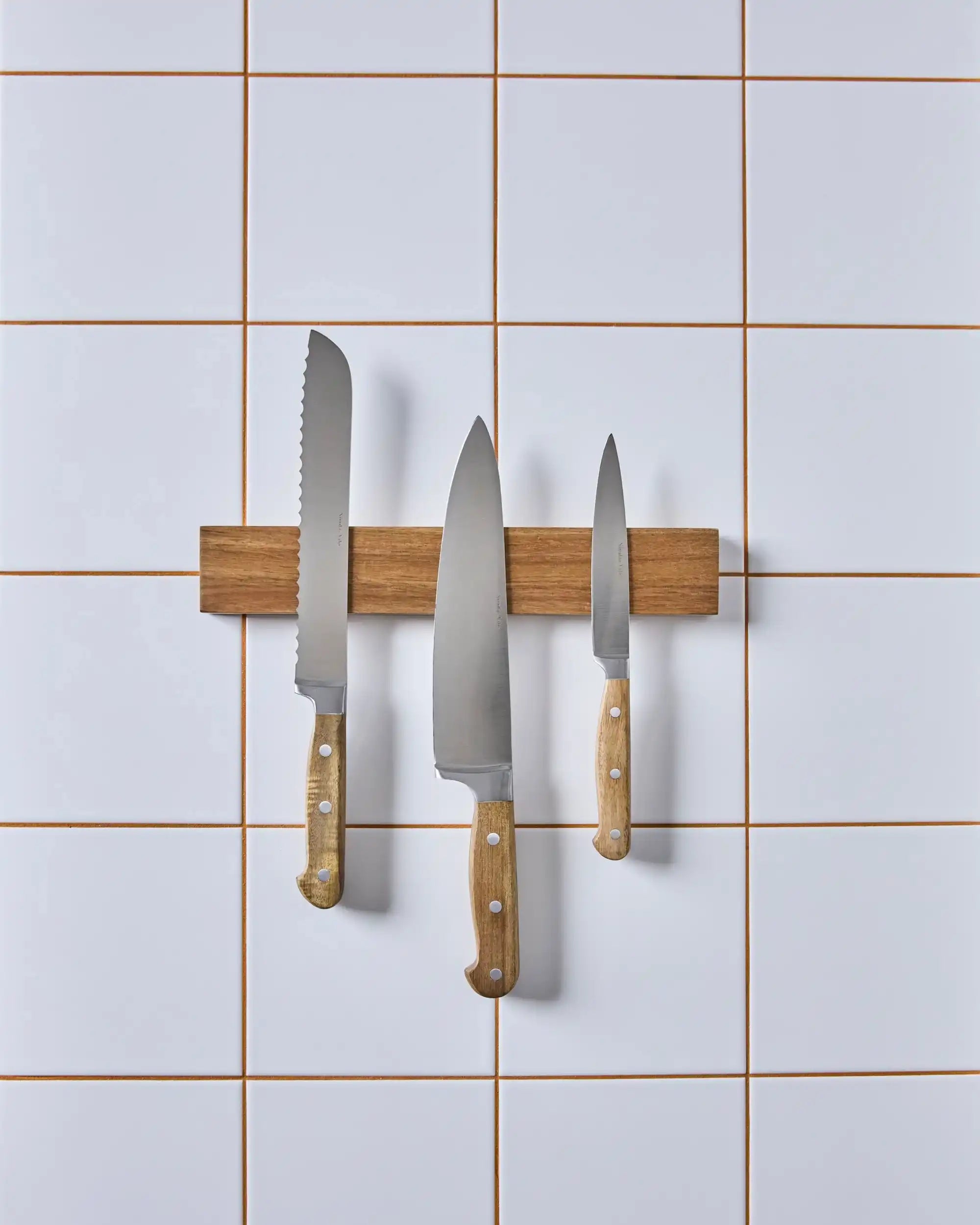 Deze stijlvolle messenset brengt niet alleen functionaliteit in je keuken, maar ook een warm accent op je aanrecht. Het ontwerp is strak en natuurlijk, met een verfijnd magnetisch blok van acaciahout dat moeiteloos drie roestvrijstalen messen terug op hun plek houdt. Een uitnodiging om koken nog meer als een genietmoment te beleven.