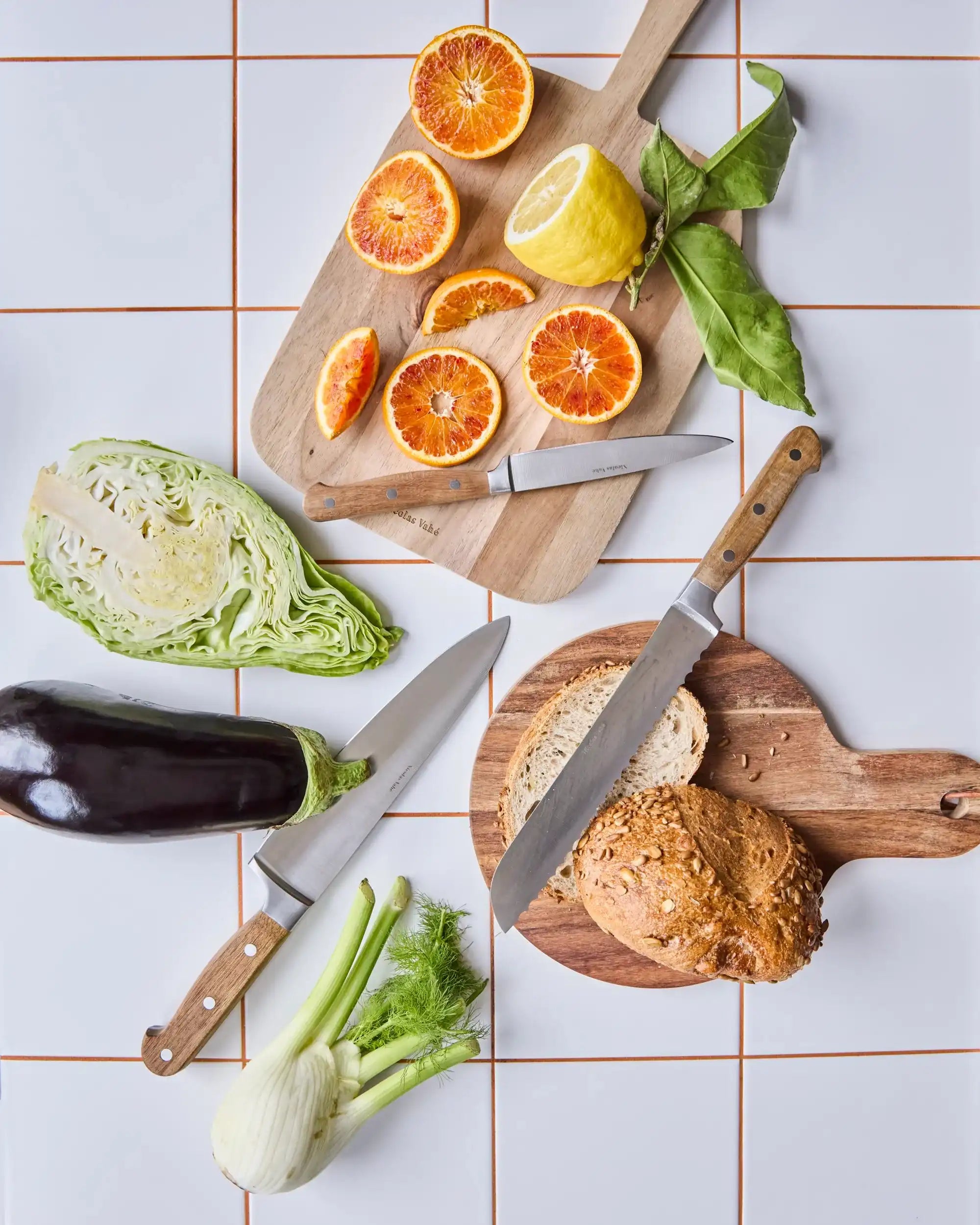 De set bestaat uit drie messen met een lemmet van stevig rvs, variërend in lengte en breedte, zodat je altijd het juiste mes bij de hand hebt. Het blok is 30 cm lang, 2 cm breed en 5 cm hoog, en dankzij de natuurkleur past het gemakkelijk in diverse keukenstijlen. De messen zelf meten respectievelijk 33,6 × 4,5 cm, 33,6 × 2,8 cm en 23,5 × 2,2 cm.