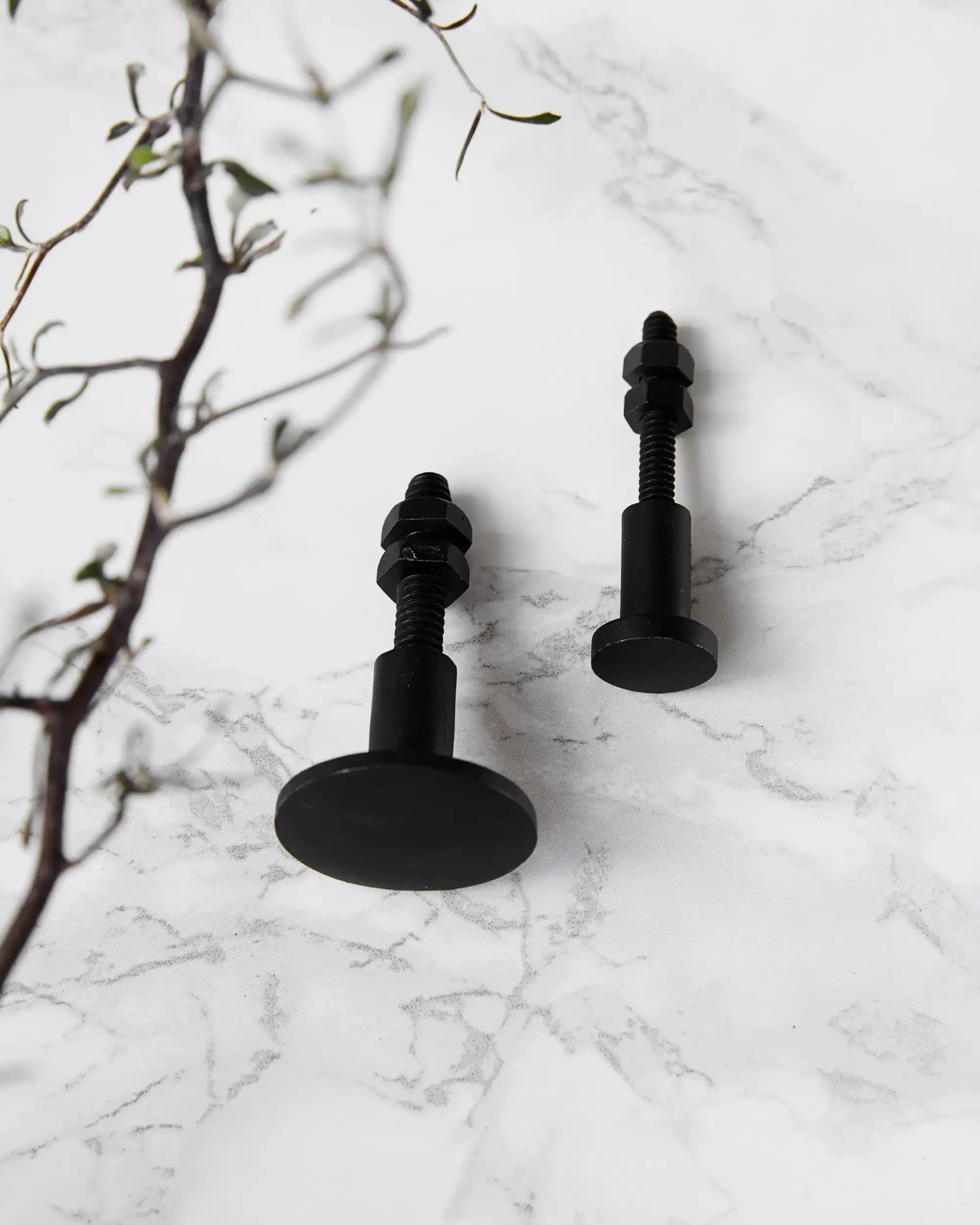 De set bestaat uit twee knoppen van stevig messing, afgewerkt met een zwarte coating. De diepte van 4,5 cm en een diameter van 1,5 cm maken ze geschikt voor diverse soorten lade- en kastfronten. Dankzij het tijdloze design sluiten ze naadloos aan bij zowel strakke als warme woonstijlen.
