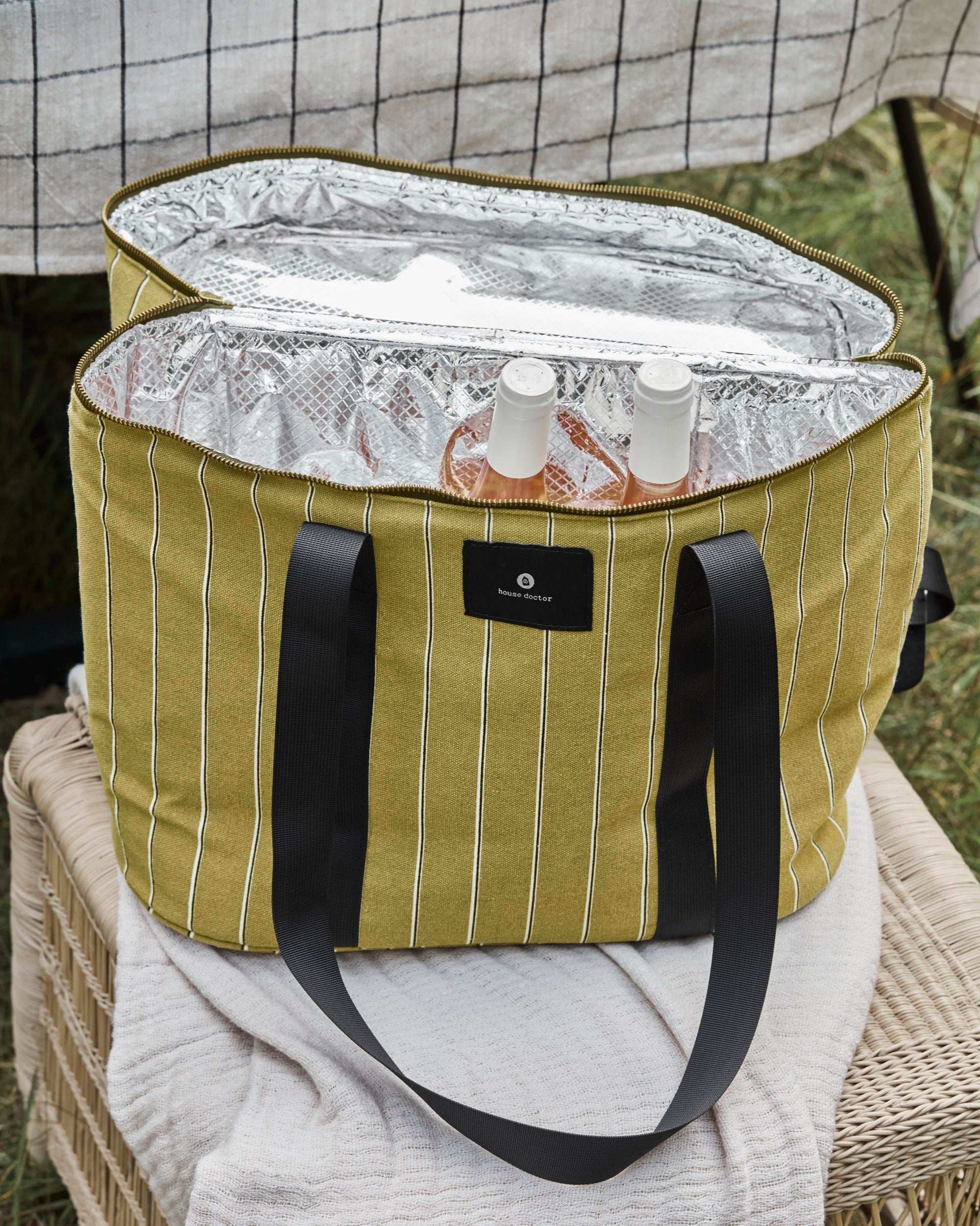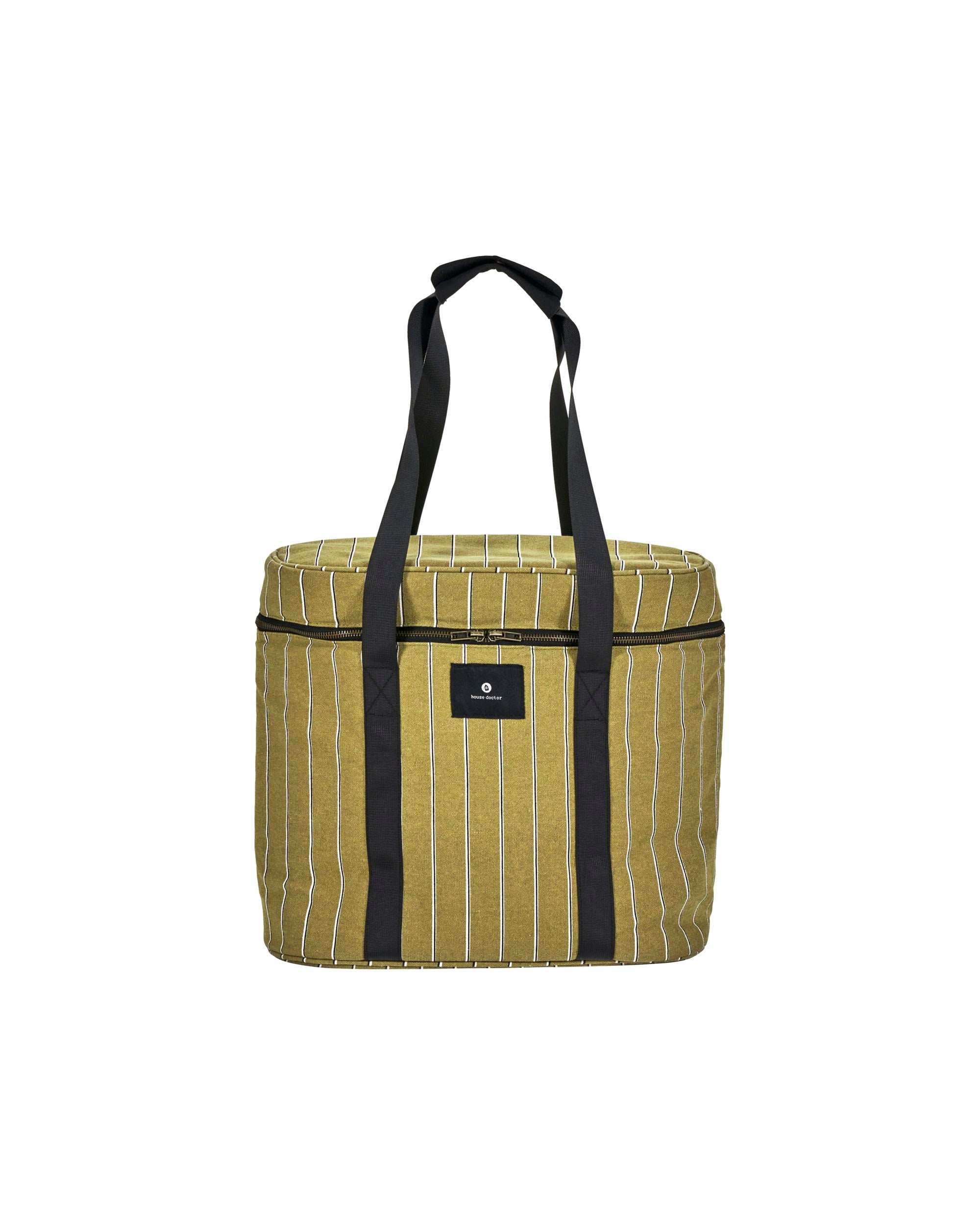 Maak van elke picknick, stranddag of roadtrip een stijlvolle ervaring met de Koeltas Satt in mosterdgeel van House Doctor. Deze eigentijdse koelbag combineert functionaliteit met een verfijnd design dankzij de opvallende kleur, verticale streepjes in off-white en zwart, en zwarte schouderbanden met comfortabel handgreepdetail.
