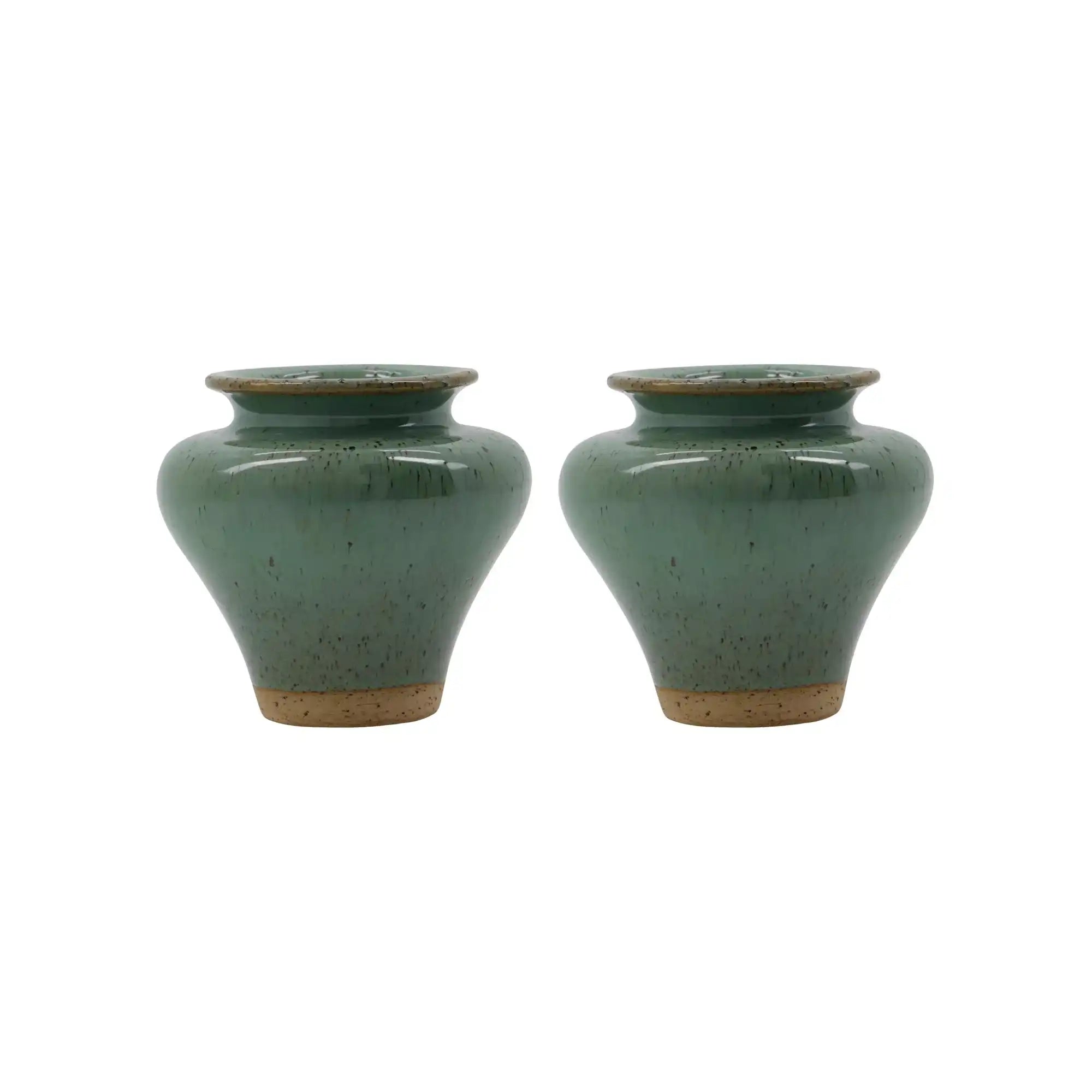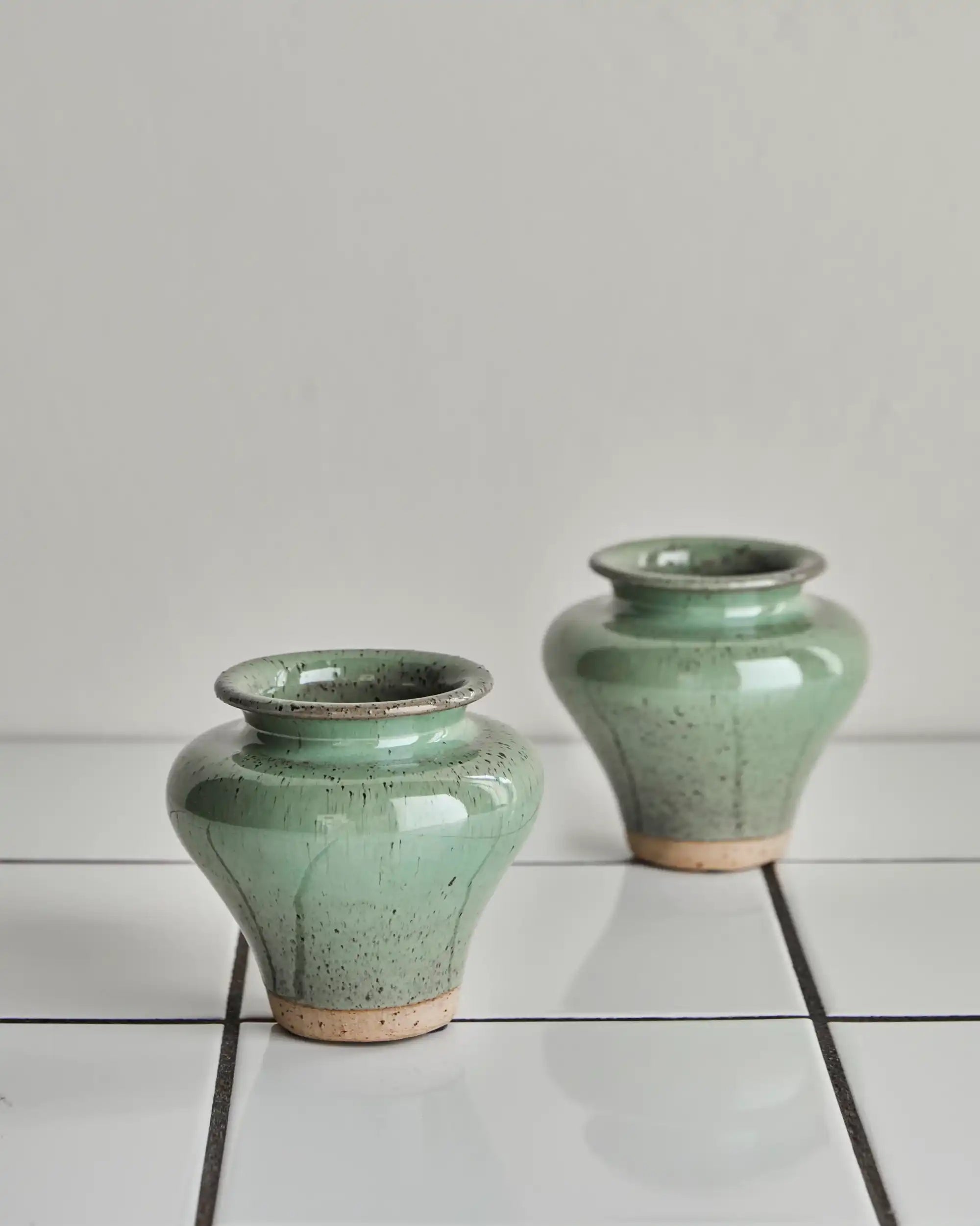 Elke vaas is handgemaakt van aardewerk en afgewerkt met een glanzende groene glazuurlaag. Dit zorgt niet alleen voor een luxe uitstraling, maar ook voor een tijdloze kwaliteit die past in zowel moderne als klassieke interieurs. De vaas heeft een hoogte van 8,5 cm en een diameter van 9,5 cm – compact, maar zeker niet onopvallend.