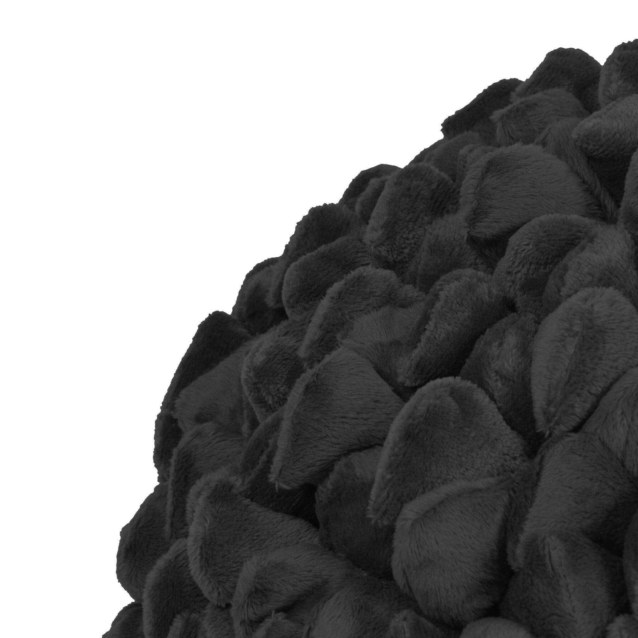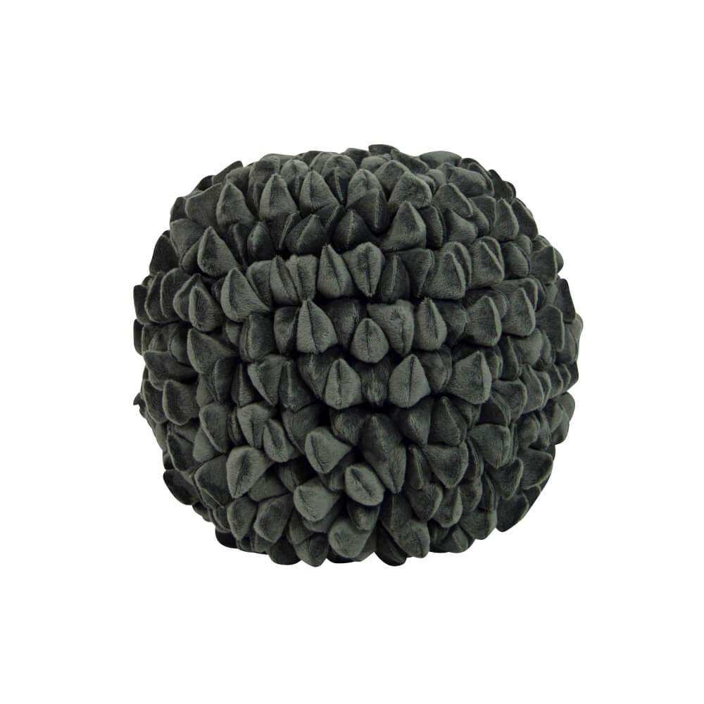 Met zijn speelse balvorm valt dit Dark Graphite kussen direct op. De unieke kiezelsteentjes look, ontstaan door driehoekige stofstukken, brengt een vleugje mysterie en klasse naar je woonomgeving.