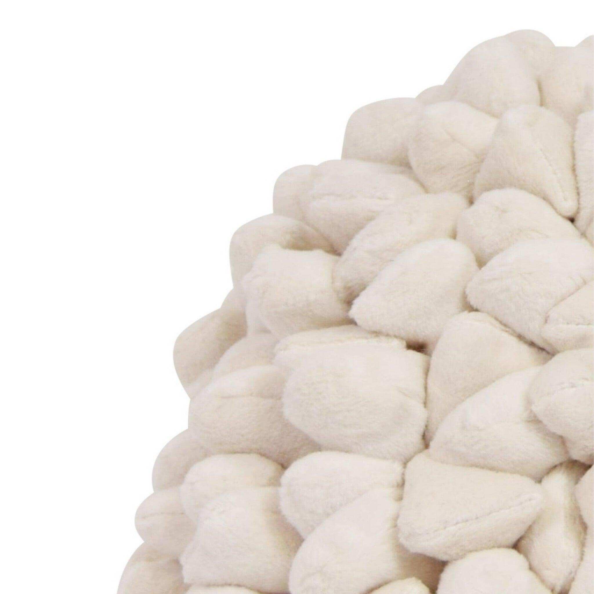 Met zijn opvallende balvorm valt dit Snow White kussen direct op. De kenmerkende kiezelsteentjes look, gecreëerd door driehoekige stofstukken, biedt een pure en verfijnde touch aan je interieur.