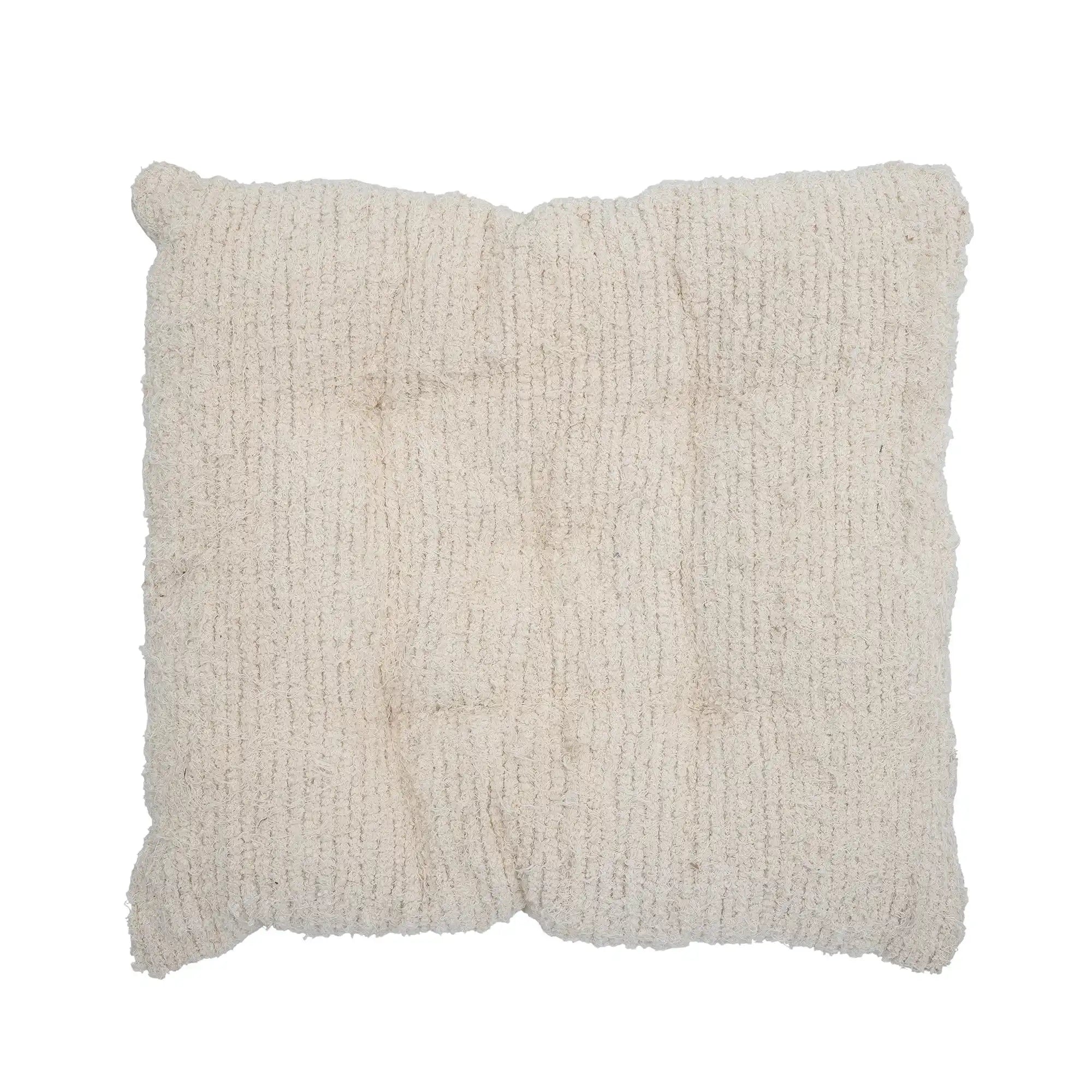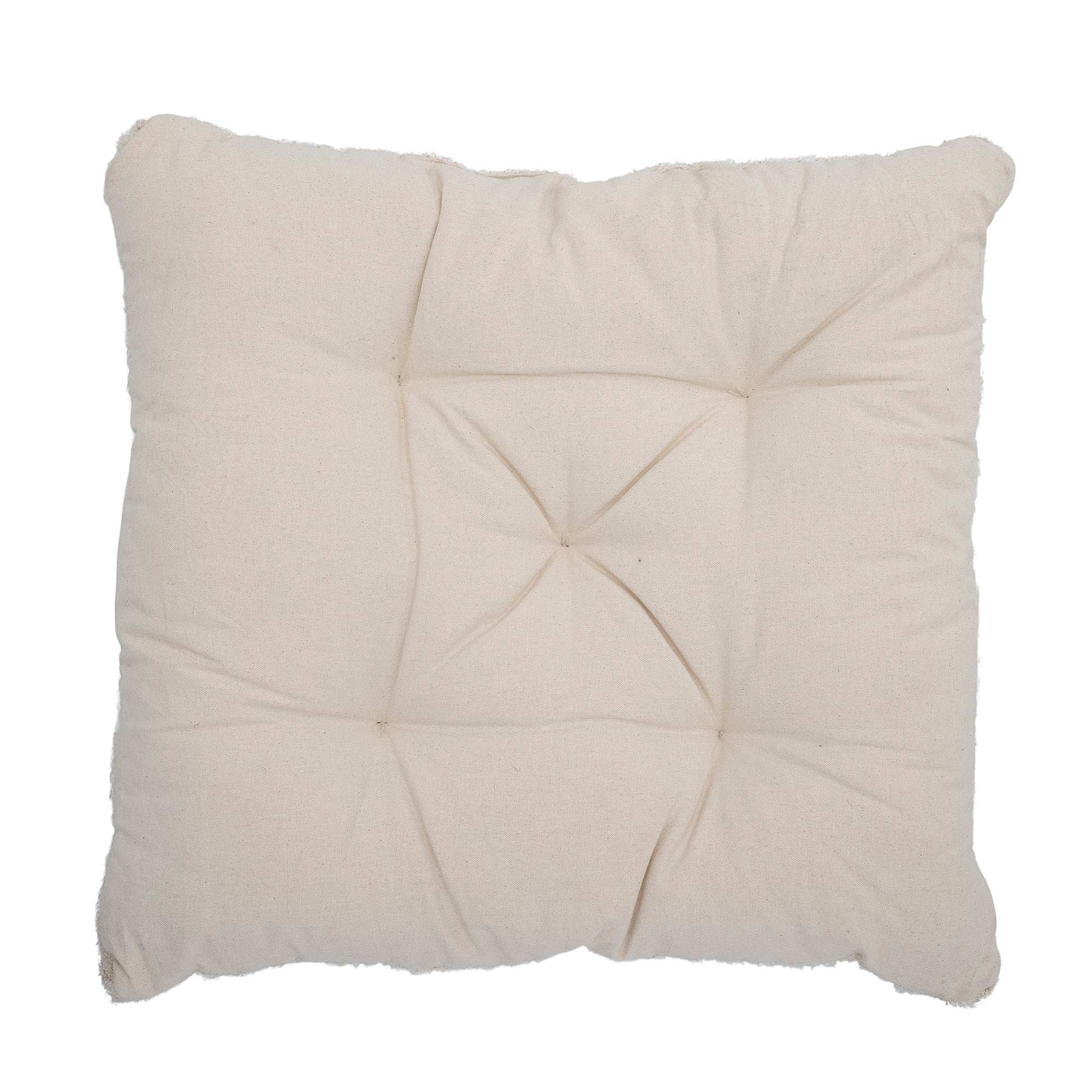 Details & materiaal: Het kussen is vervaardigd uit luxe katoen en heeft een speels, fluffy geweven structuur, wat zorgt voor zowel comfort als een stijlvolle uitstraling. Met zijn afmetingen van 60 x 60 cm creëer je eenvoudig een royaal loungegevoel op de bank, terwijl de lichte kleur prachtig combineert met andere tinten en texturen.