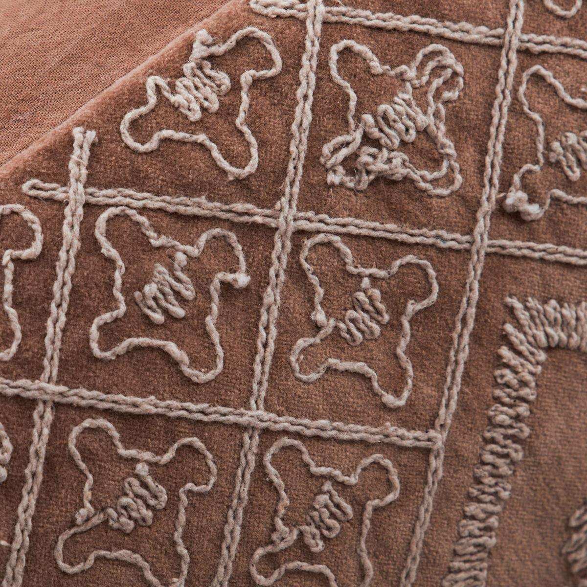 De House Doctor Kussenhoes Edda camel 50x50cm combineert de zachtheid van katoenfluweel met de verfijning van etnisch geïnspireerd borduurwerk. De handgemaakte details geven deze kussenhoes een exclusief en authentiek karakter, waardoor het een opvallend accessoire is voor elke ruimte. De warme kamelkleur en het subtiele borduurwerk zorgen voor een rustige en uitnodigende uitstraling, ideaal voor zowel moderne als traditionele interieurs.