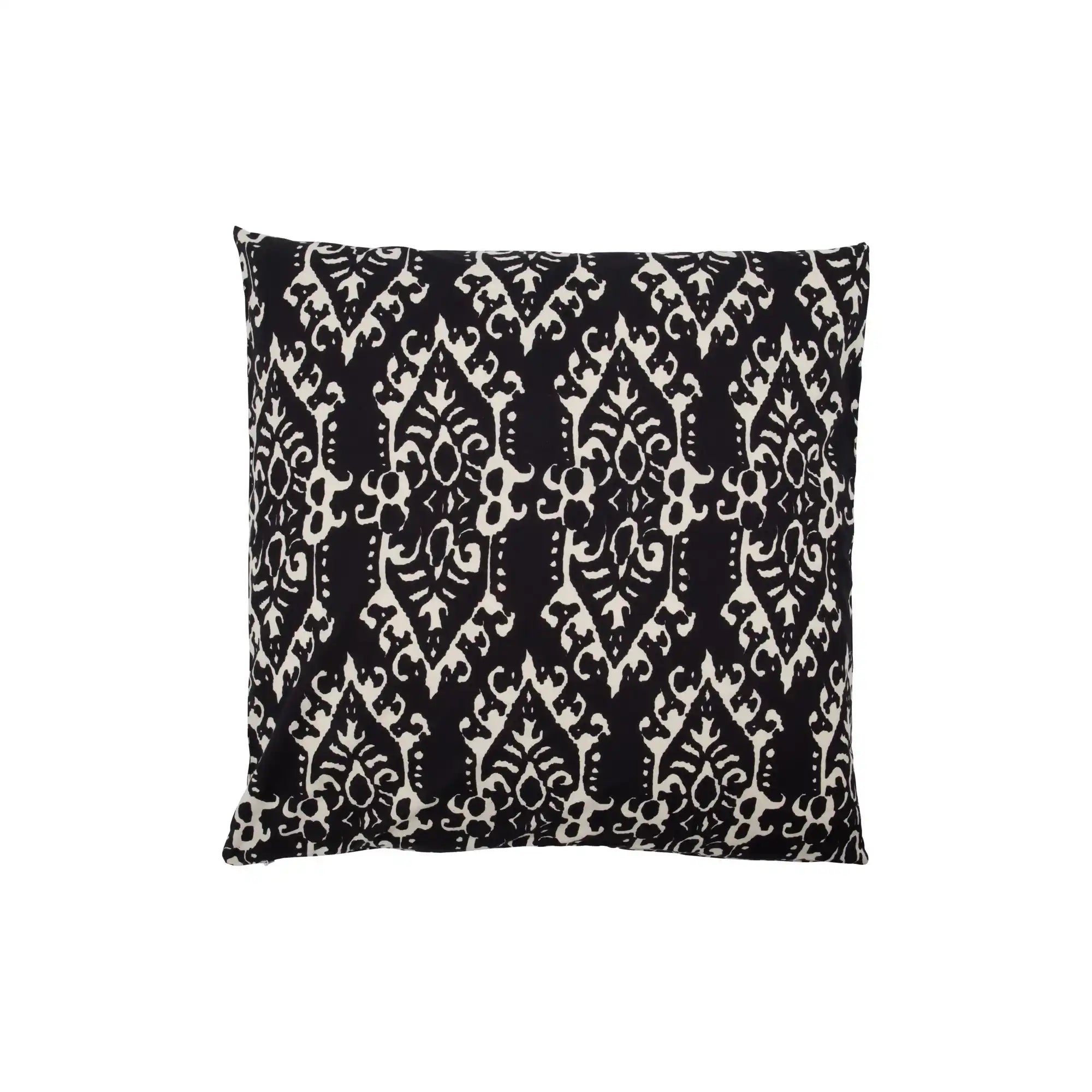 De hoes is gemaakt van zacht katoen en meet 50 x 50 cm – een perfecte maat voor op de bank, in je favoriete stoel of als aanvulling op je beddengoed. De diepe zwarte kleur in combinatie met het witte dessin maakt het eenvoudig te combineren met verschillende texturen en tinten.