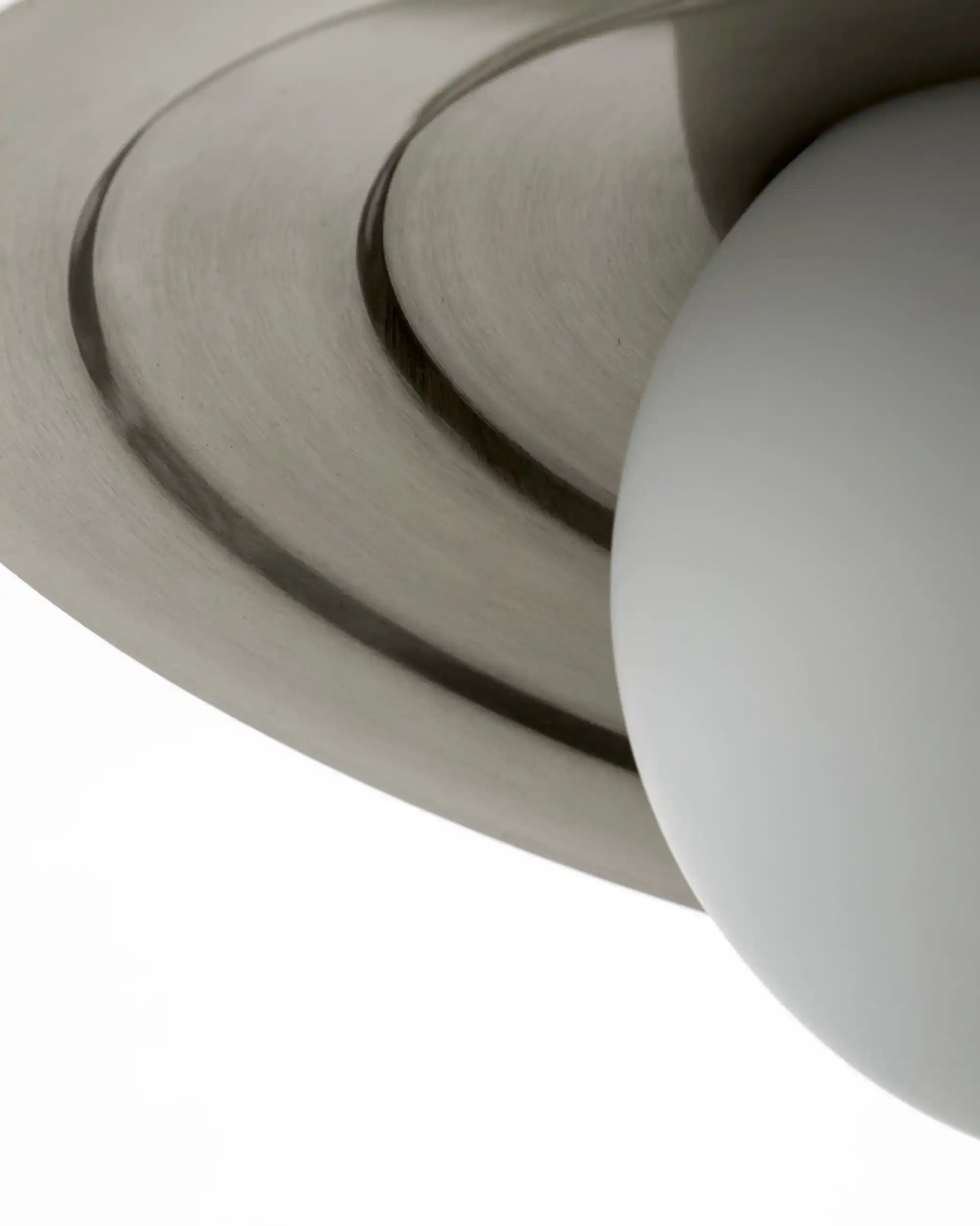 Geef jouw interieur een stijlvolle update met de Lamp Coin in geborsteld zilver en mat wit. Deze exclusieve pendellamp combineert een industrieel karakter met zachte elegantie, dankzij de subtiele mix van ijzer en glas. Het unieke, gelaagde ontwerp valt direct op en verrijkt je woonkamer, eetkamer of hal met een modern accent.