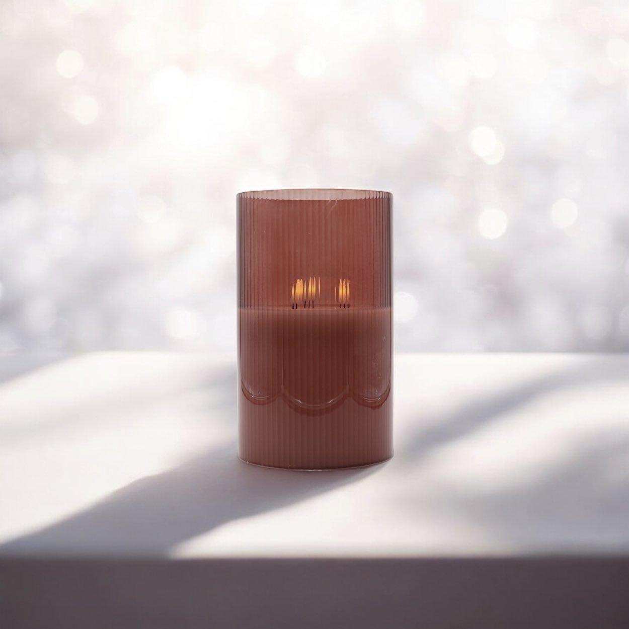 Het Mansion Atmosphere Led sfeerlicht roodbruin 15x25cm combineert elegantie en functionaliteit om je interieur te verrijken met een warme, uitnodigende sfeer. Dit prachtige led sfeerlicht, met zijn warme roodbruine kleur en cilindrische vorm, voegt een luxe uitstraling toe aan elke kamer. De verticale lijnen in het glas versterken het chique design. Met de ingebouwde led-kaars, gemaakt van echt kaarsvet, geniet je van een realistisch kaarseffect zonder rook of brandgevaar. Dit led sfeerlicht werkt op 2 AA-batterijen en biedt tot 400 uur aan sfeerverlichting. Dankzij de optionele afstandsbediening kun je eenvoudig de lichtsterkte dimmen, de timer instellen en de kaarsstanden aanpassen.