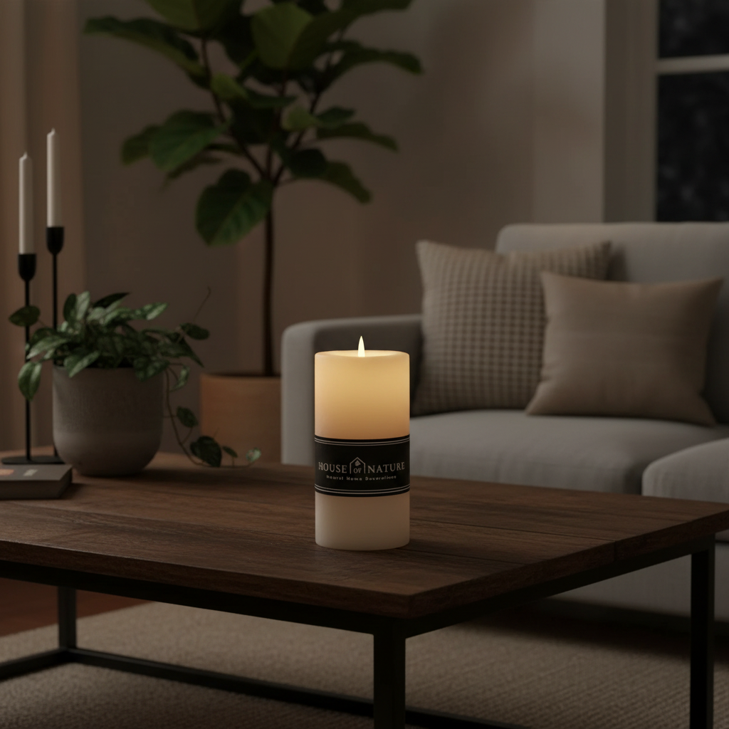 Je bedient de kaars eenvoudig met de schakelaar aan de onderzijde. Voor nog meer gebruiksgemak is er een optionele House of Nature afstandsbediening (artikelnummer 411199) waarmee je ook een timer kunt instellen. De kaars werkt op batterijen (niet meegeleverd) en is beschikbaar in diverse kleuren en formaten.