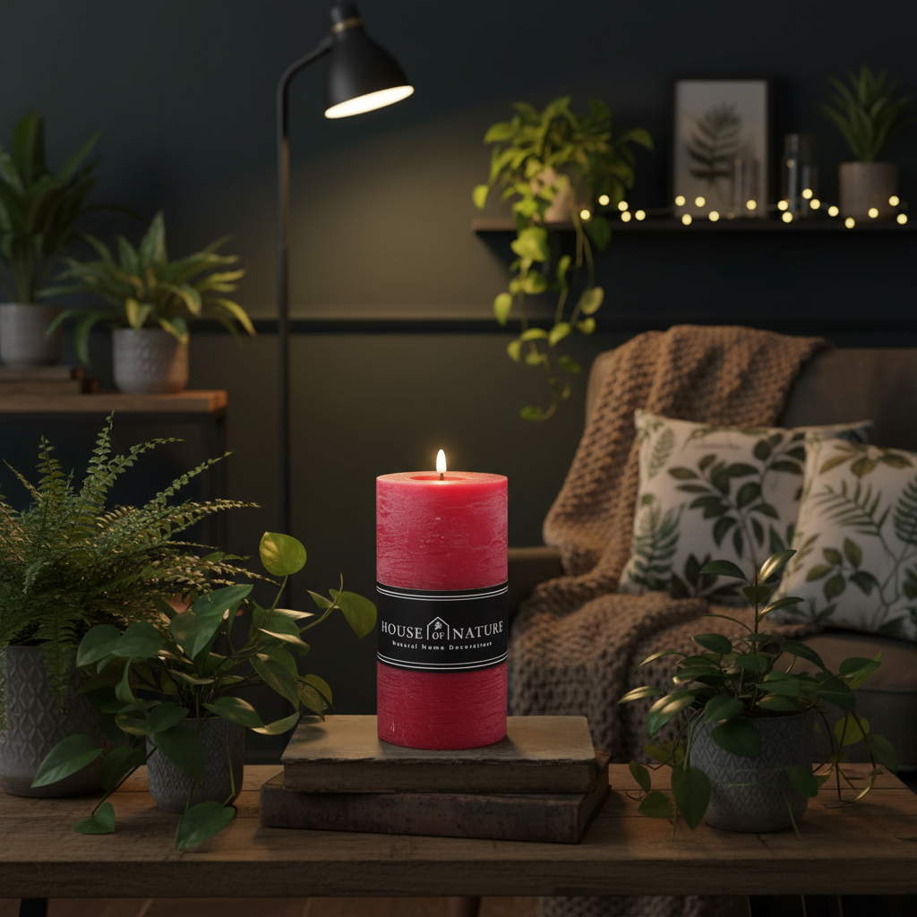 Gebruik de rode ledkaars als sfeervolle eyecatcher op een dienblad, in een windlicht of als onderdeel van een feestelijke tafeldecoratie. Combineer met zandkleurige of grijze varianten van House of Nature voor een warm contrast.