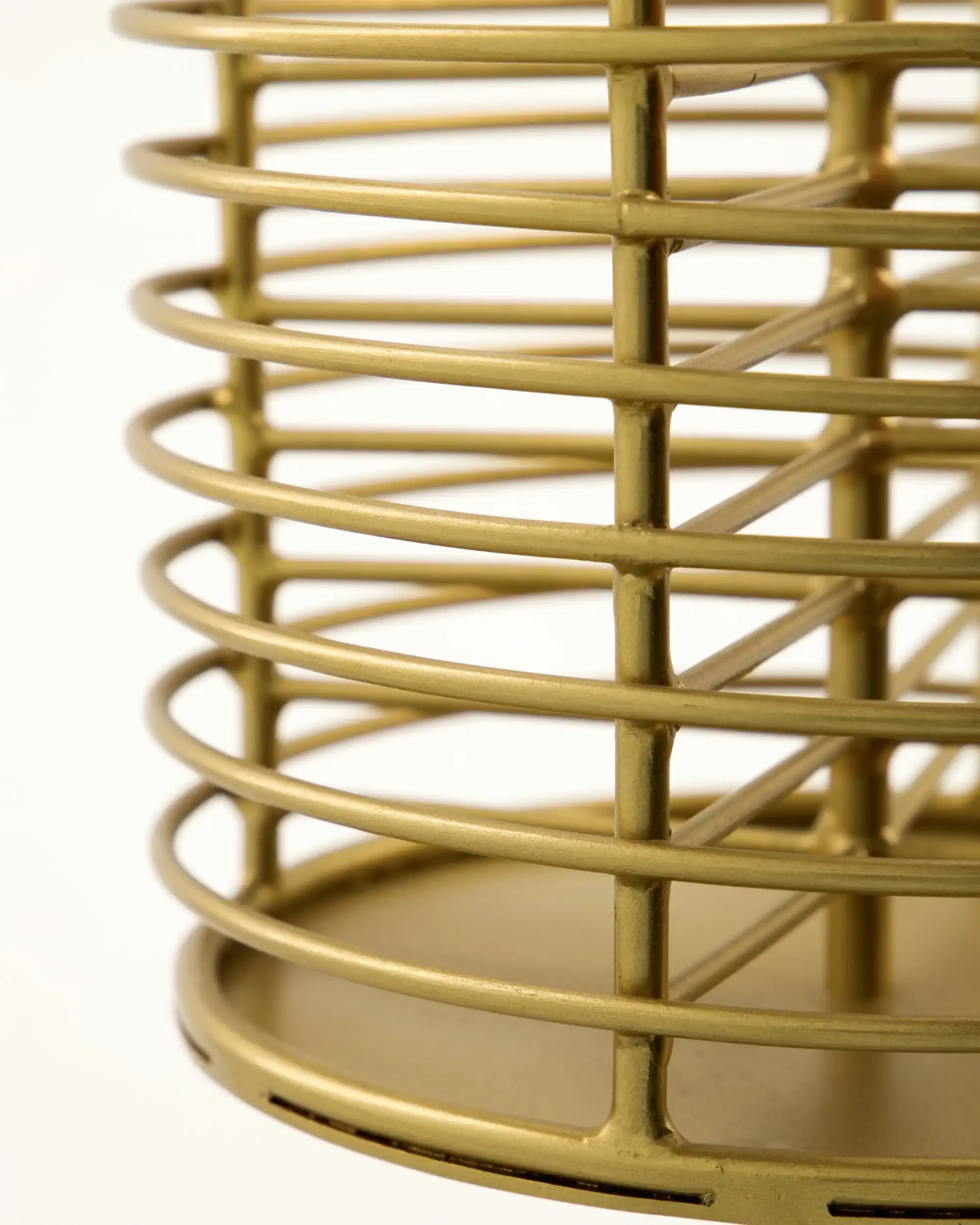 De box is gemaakt van metaal en heeft een warme afwerking in antiek koper. Met vier gelijk verdeelde vakken en een praktisch centraal handvat, is hij niet alleen functioneel maar ook makkelijk verplaatsbaar — van keukentafel tot werkhoek. De hoogte bedraagt 28,5 cm en de diameter van de basis is 15 cm.