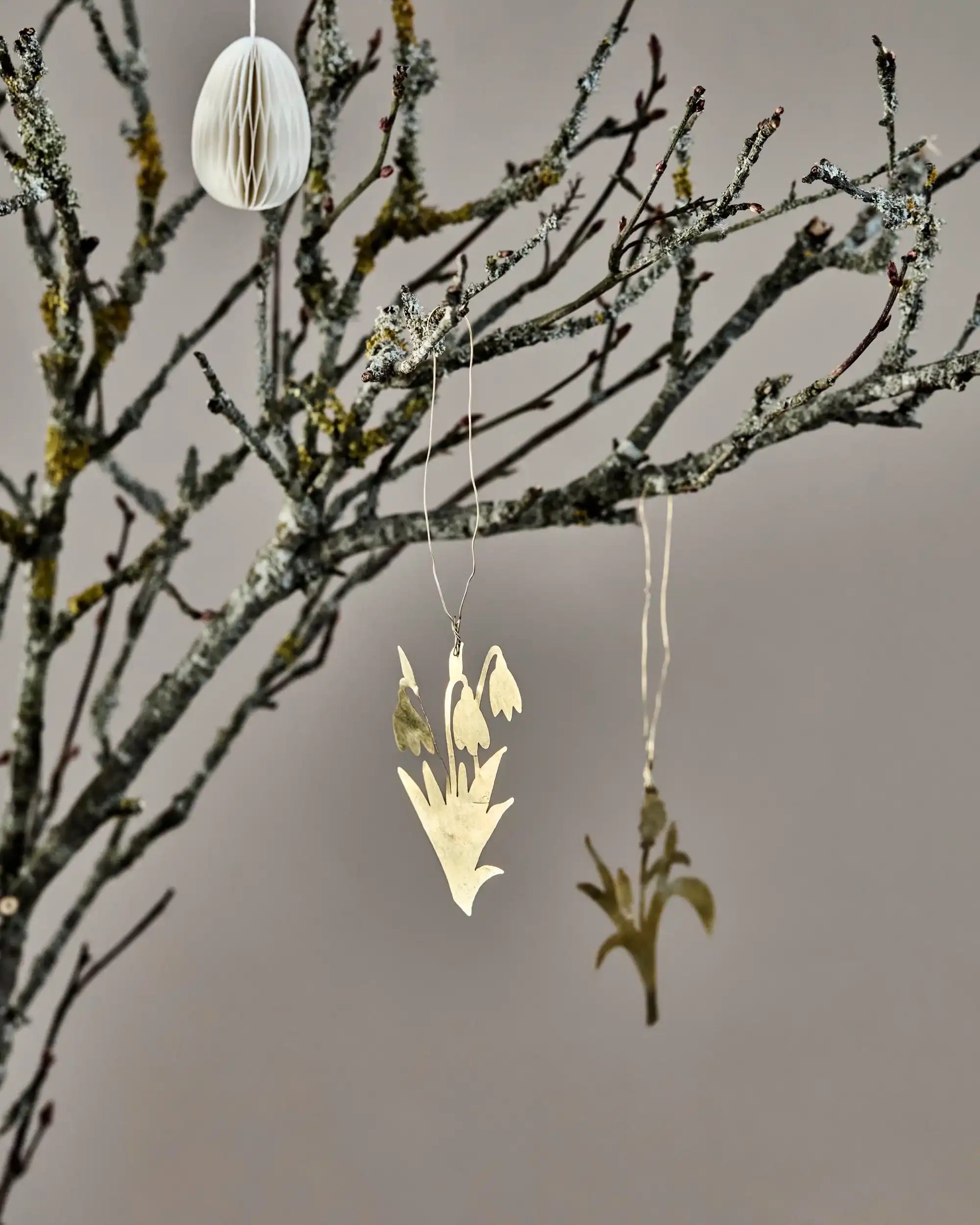 Breng warmte en karakter in huis met deze subtiele blikvangers. De Lilly ornamentenset bestaat uit drie handgemaakte bloemvormige hangers met een verfijnde antiek koperen afwerking. Een elegante toevoeging aan je lente- of paasdecoratie, maar ook prachtig als blijvend accent aan een tak of wandhaak.