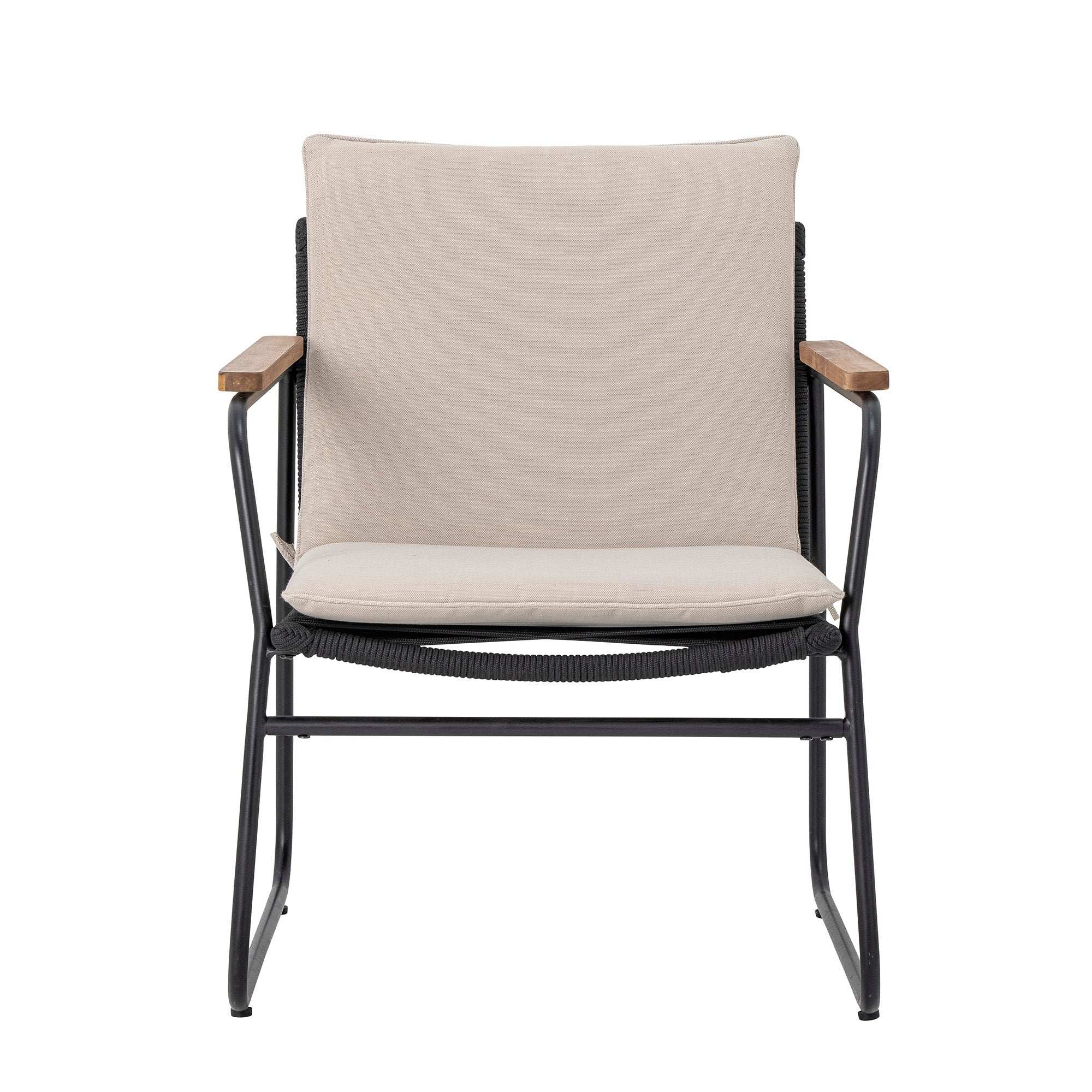 Details & materiaal: De Hampton stoel van Bloomingville combineert stevig zwart metaal met natuurlijk acaciahout en vakkundig geweven koord, aangevuld met zachte, lichte kussens. Dankzij de royale afmetingen (68 cm breed, 76 cm hoog, 65 cm diep) biedt deze stoel volop ruimte om in weg te zakken, terwijl het lichte frame het gemakkelijk maakt de stoel te verplaatsen wanneer je dat wilt.