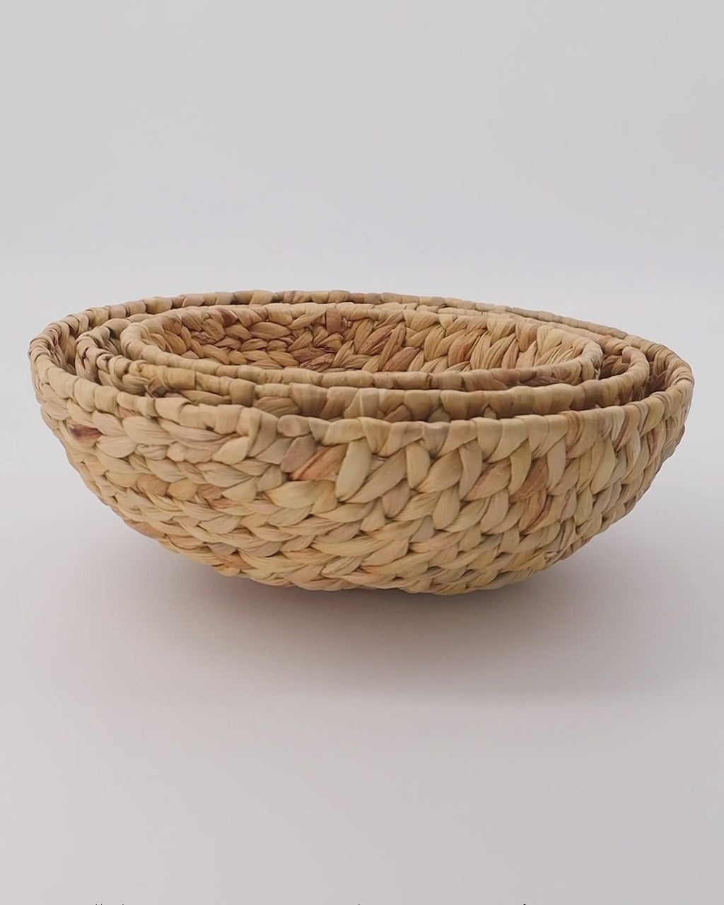 Kies voor de natuurlijke charme van waterhyacint en breng een beetje van de buitenwereld naar binnen met de Bow mandenset van House Doctor.