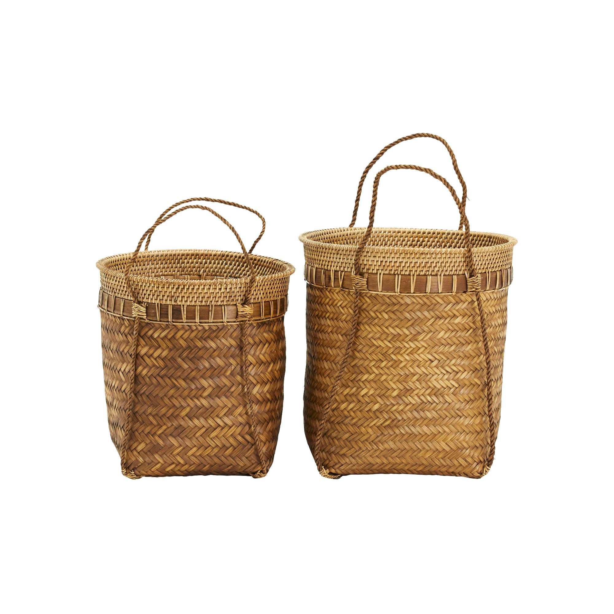 De Balie mandenset van House Doctor laat zien dat praktische opbergruimte ook gewoon prachtig kan zijn. Deze set van twee handgeweven manden is gemaakt van bamboe en rotan, met oog voor detail en een flinke dosis vakmanschap. De verschillende vlechtpatronen zorgen voor een rijke, natuurlijke uitstraling – perfect voor wie houdt van ambachtelijke charme in huis.