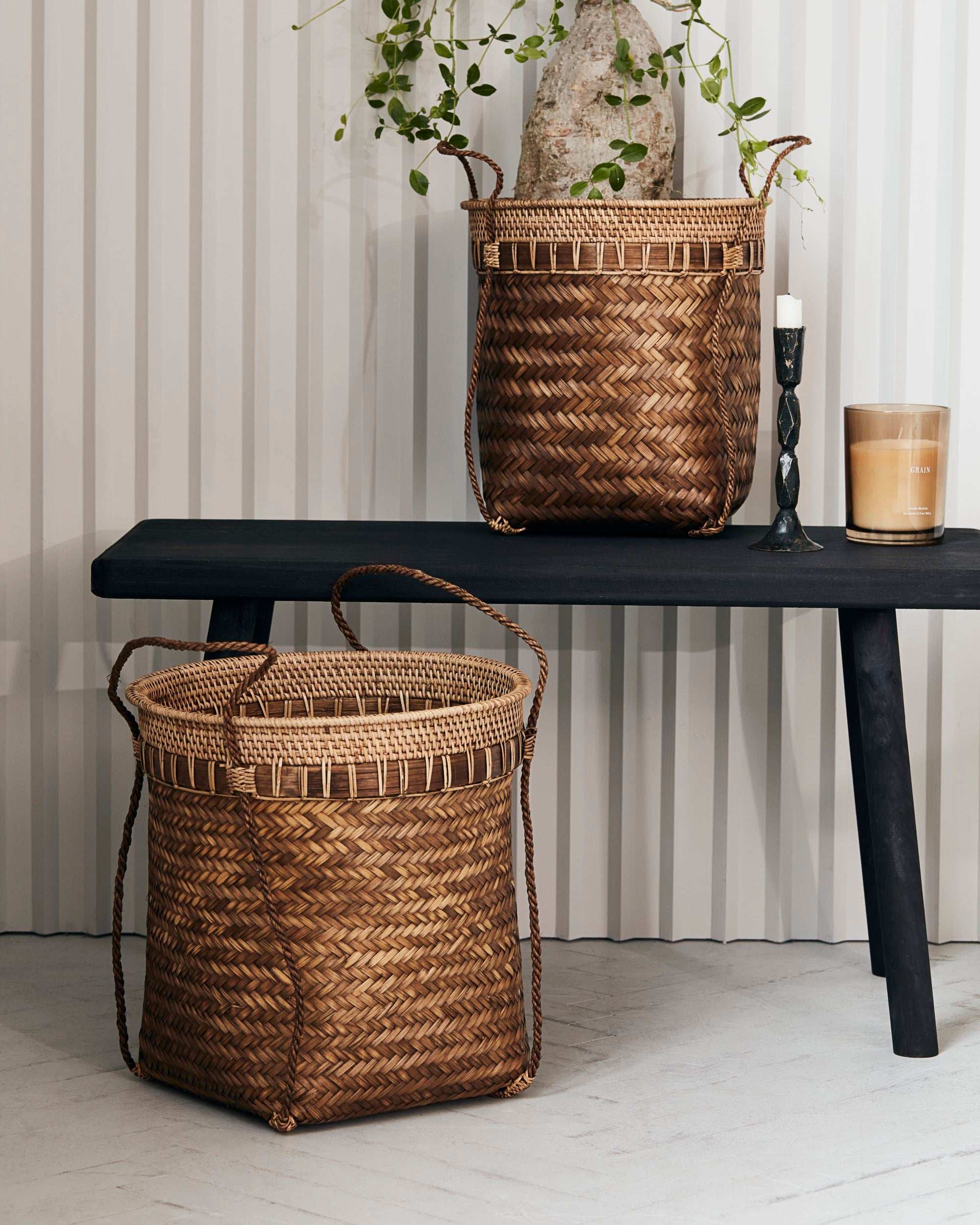 Gebruik de manden voor plaids, speelgoed, tijdschriften of als decoratieve eyecatchers in de woonkamer, slaapkamer of hal. En met hun warme, goudbruine kleur passen ze moeiteloos in vrijwel elk interieur.