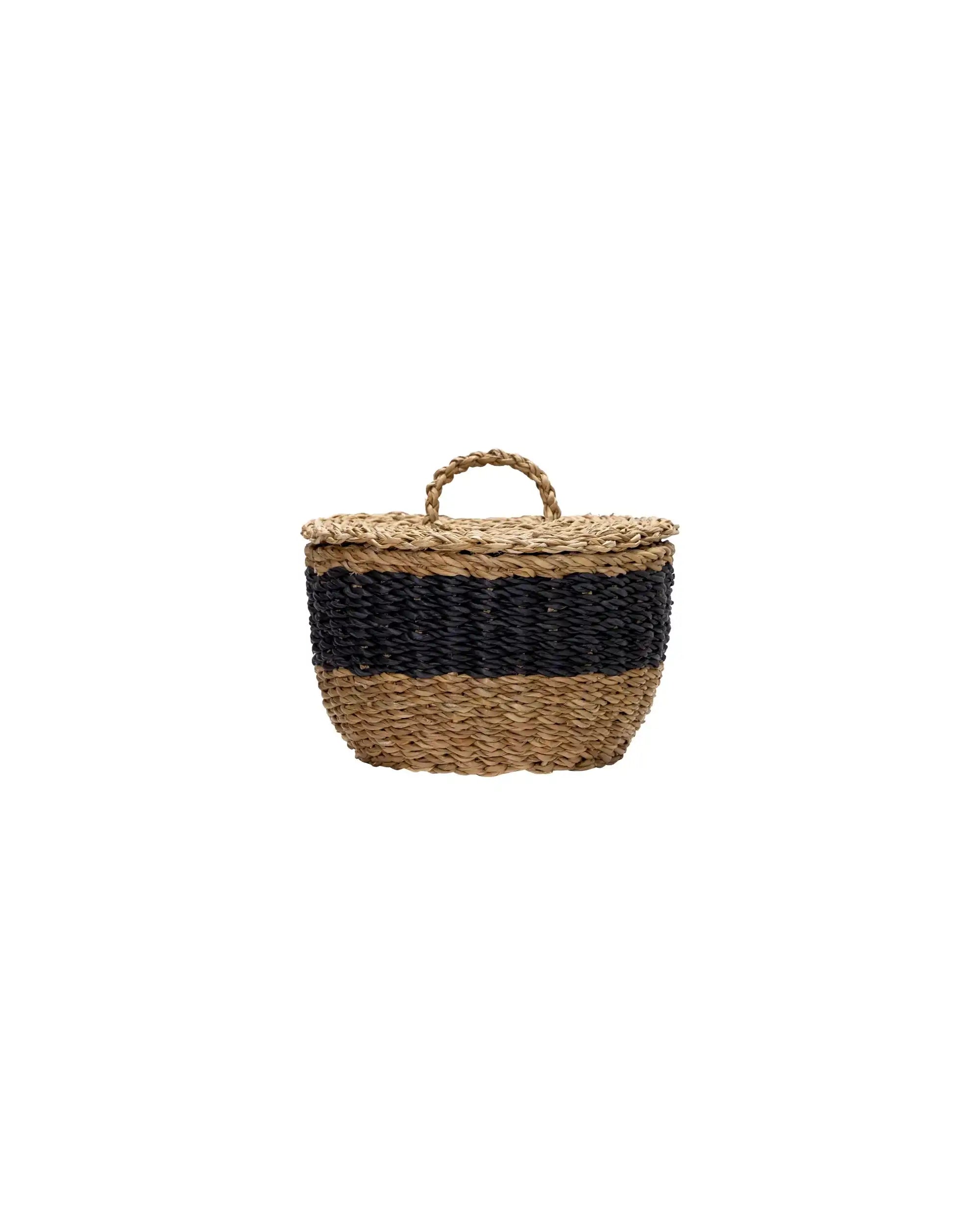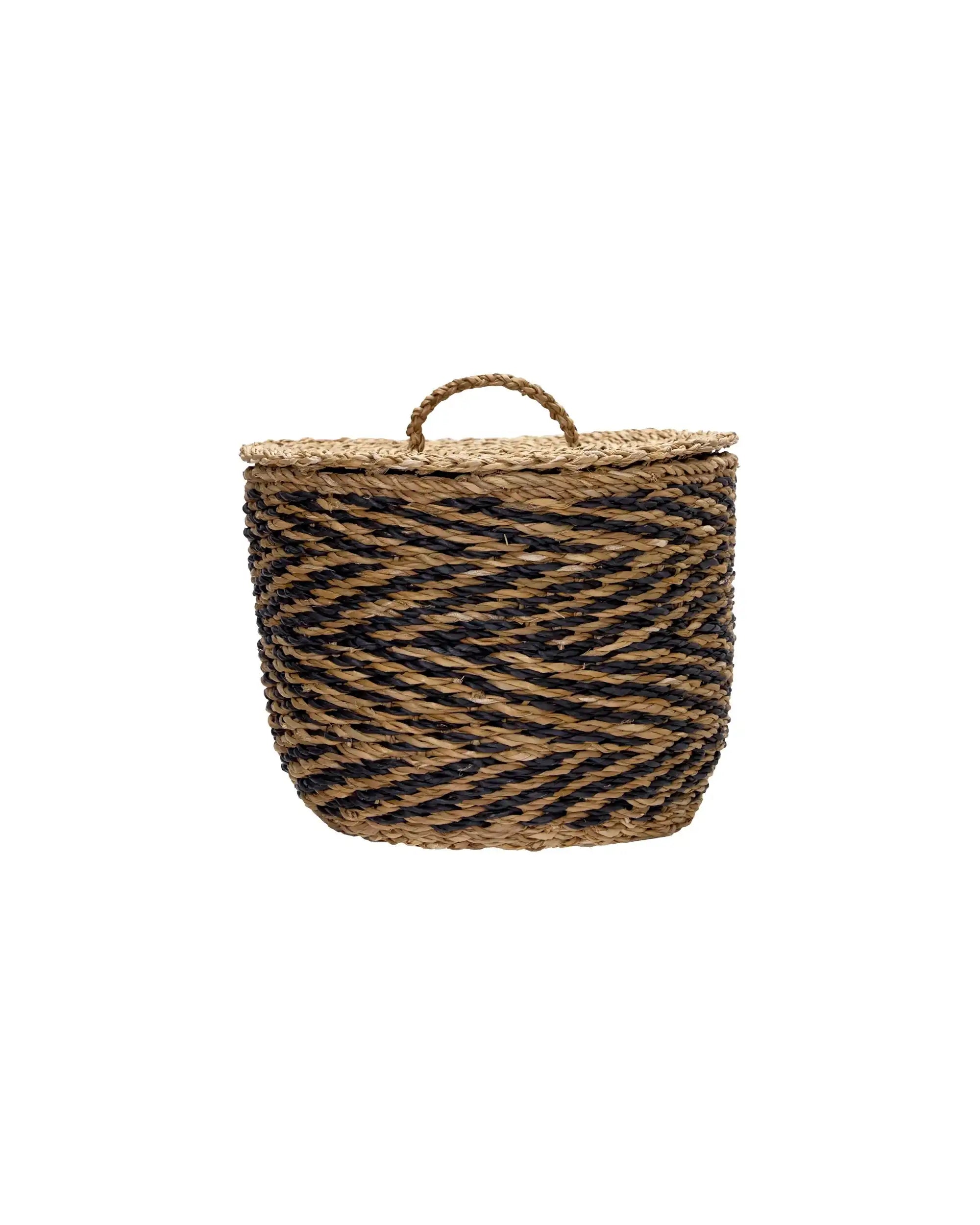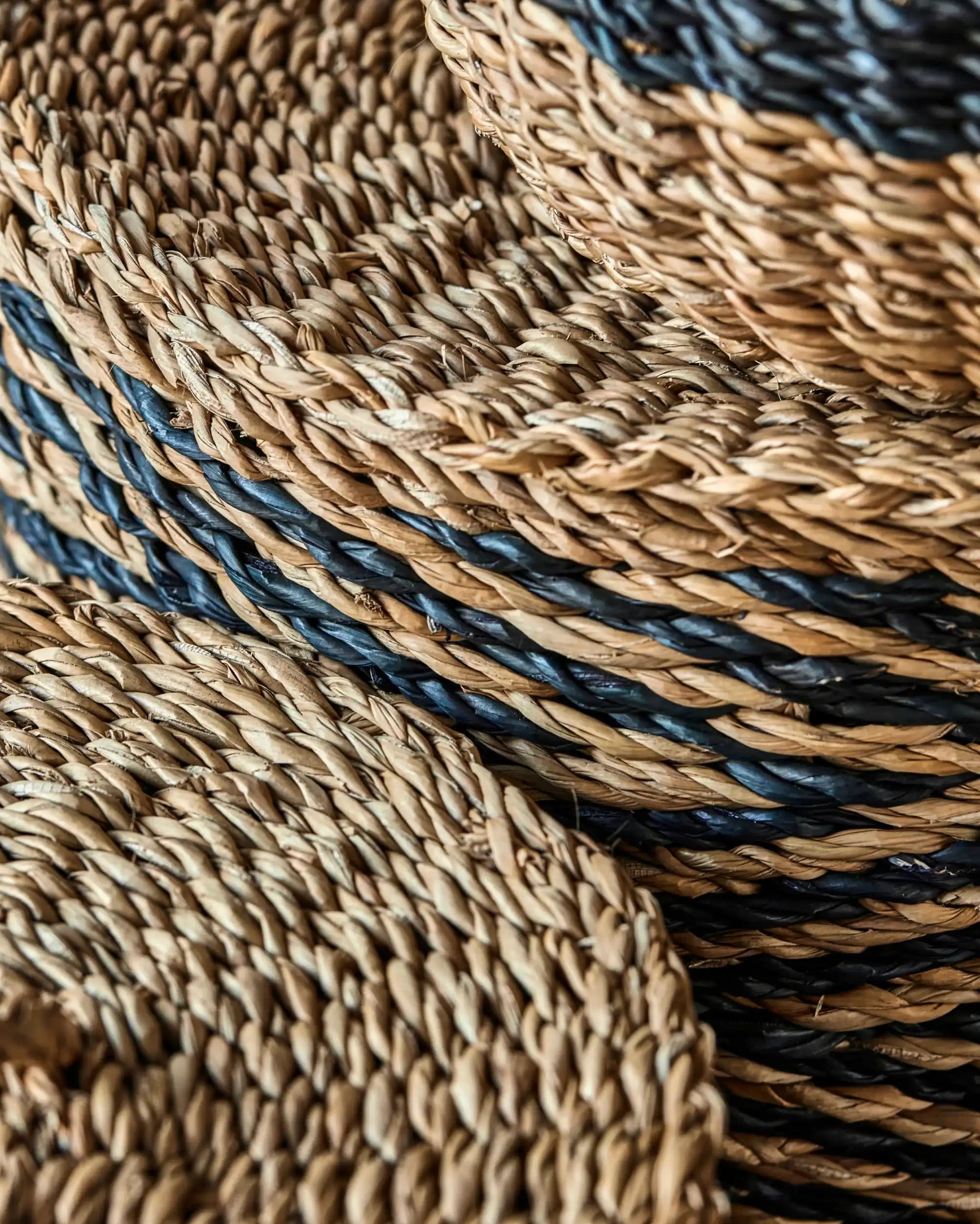 Geef je interieur een speelse en stijlvolle boost met de Cesto mandenset. Deze drie handgemaakte manden van 100% zeegras combineren natuurlijke charme met moderne grafiek. Elk exemplaar heeft een eigen patroon in zwart/naturel en een los deksel, waardoor je spullen stijlvol uit het zicht blijven. Ideaal voor het opbergen van speelgoed, plaids of woonaccessoires – of simpelweg als decoratieve eyecatcher. Dankzij de stevige vlechtstructuur zijn de manden zowel robuust als flexibel inzetbaar in elke ruimte.