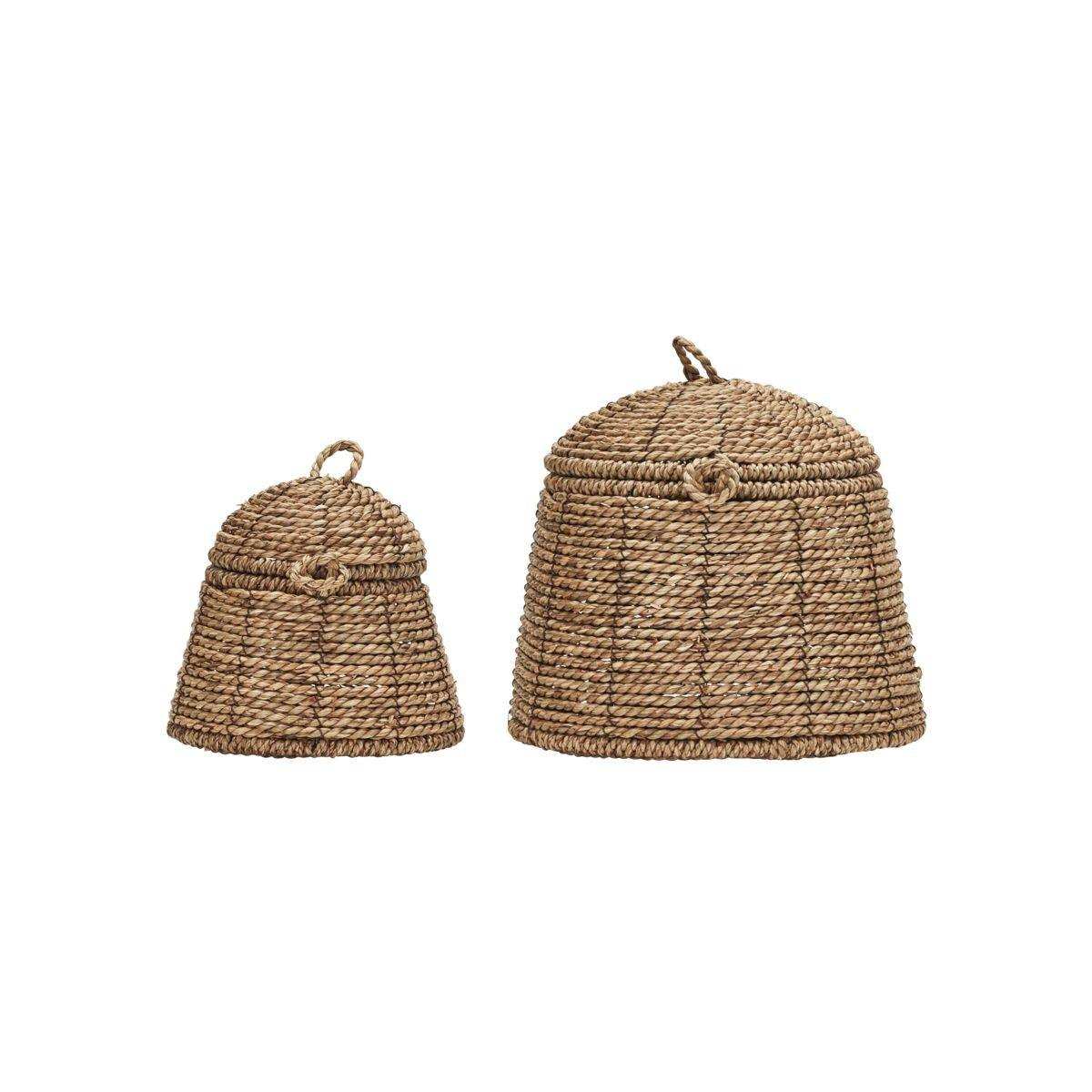 Breng warmte en natuurlijke charme in huis met de House Doctor Manden Set Rama Naturel. Deze set bestaat uit twee met de hand gevlochten manden van duurzaam zeegras, waardoor elke mand een unieke en authentieke uitstraling heeft. De combinatie van het rustieke vlechtwerk en het speelse sluitingsdetail maakt deze manden zowel praktisch als decoratief.