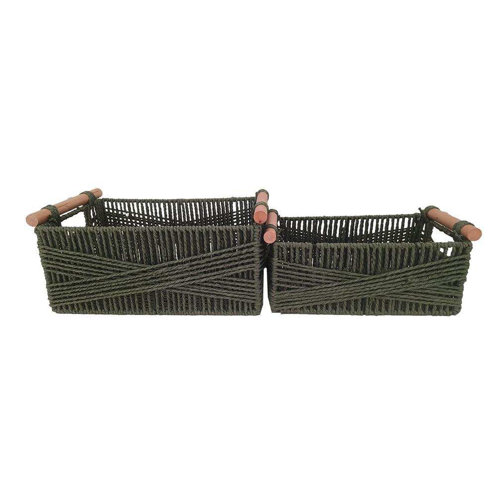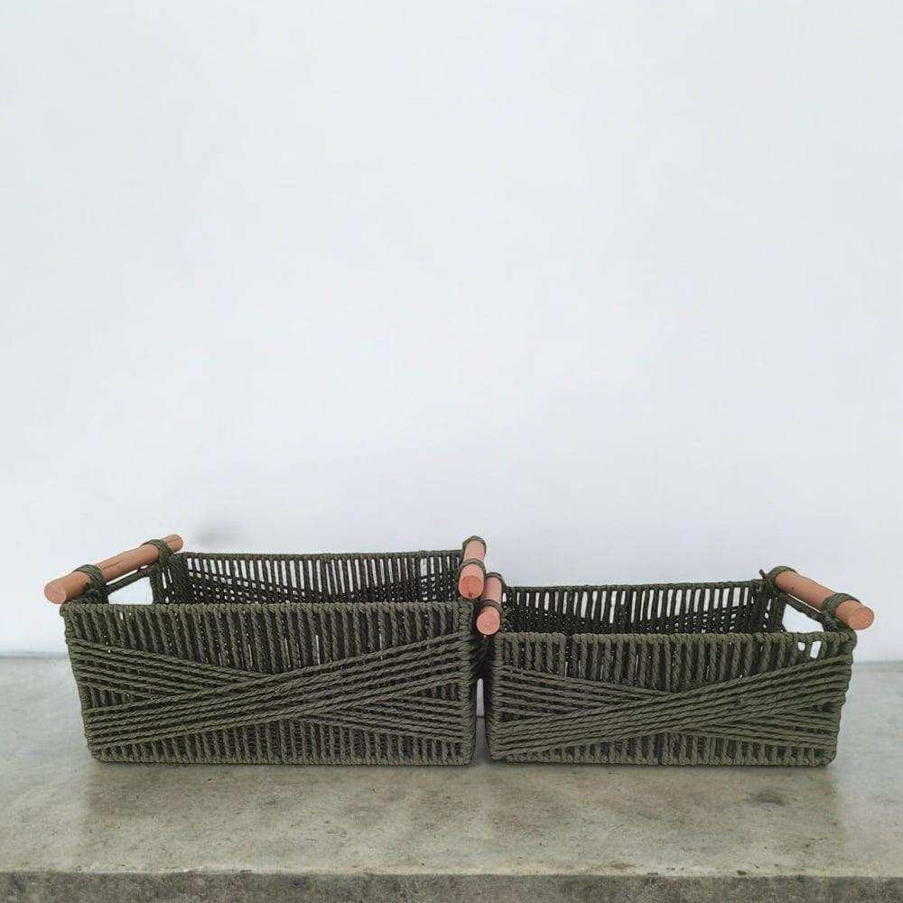 Geef je interieur een frisse en natuurlijke uitstraling door deze manden te vullen met kleurrijke plaids of decoratieve kussens. Plaats ze naast de bank als stijlvolle opbergers of gebruik ze in de badkamer voor handdoeken en verzorgingsproducten. In de kinderkamer zijn ze handig voor speelgoed en knuffels. Door de groene kleur en natuurlijke textuur van het papieren touw passen deze manden goed bij houten meubels en planten voor een harmonieus en sfeervol geheel.