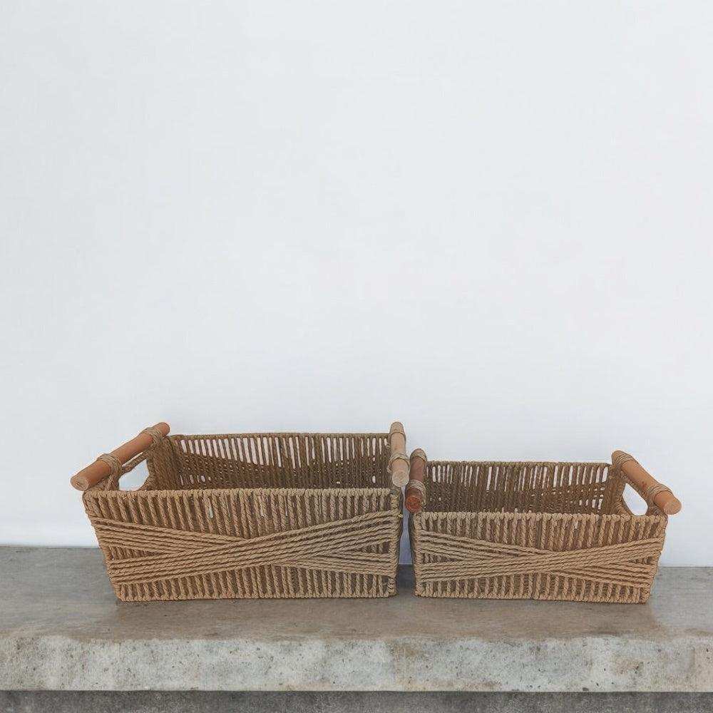 Creëer een gezellige hoek door de manden naast elkaar te plaatsen en te vullen met plaids, kussens of andere decoratieve items. Gebruik de manden als decoratief accent in de woonkamer of slaapkamer om een warme en natuurlijke sfeer te creëren. In de badkamer zijn ze perfect om handdoeken of verzorgingsproducten in op te bergen, en in de kinderkamer kunnen ze helpen speelgoed netjes te houden. De natuurlijke uitstraling van het papieren touw maakt het eenvoudig om de manden in elke ruimte te integreren.