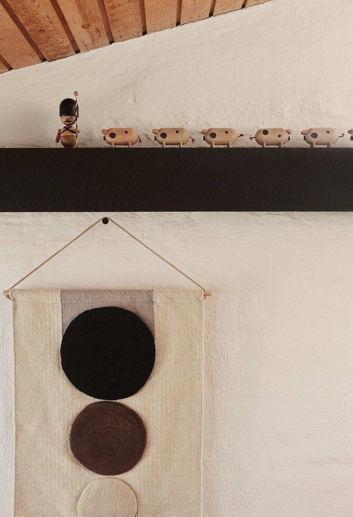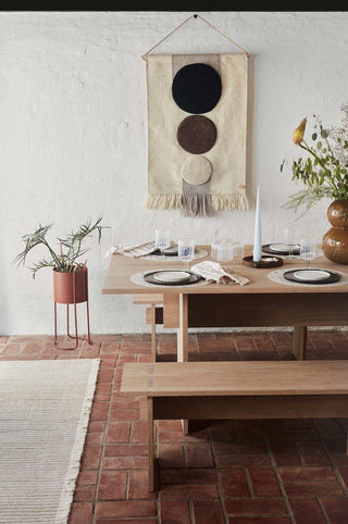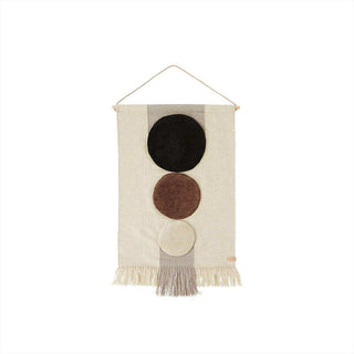 Met zijn prachtige drie cirkels van verschillende groottes tegen een lichte achtergrond, is het Maru wandkleed een echte blikvanger. Alsof dat nog niet genoeg is, zorgen de schattige franjes aan de onderkant voor die extra finishing touch die we allemaal zo leuk vinden.