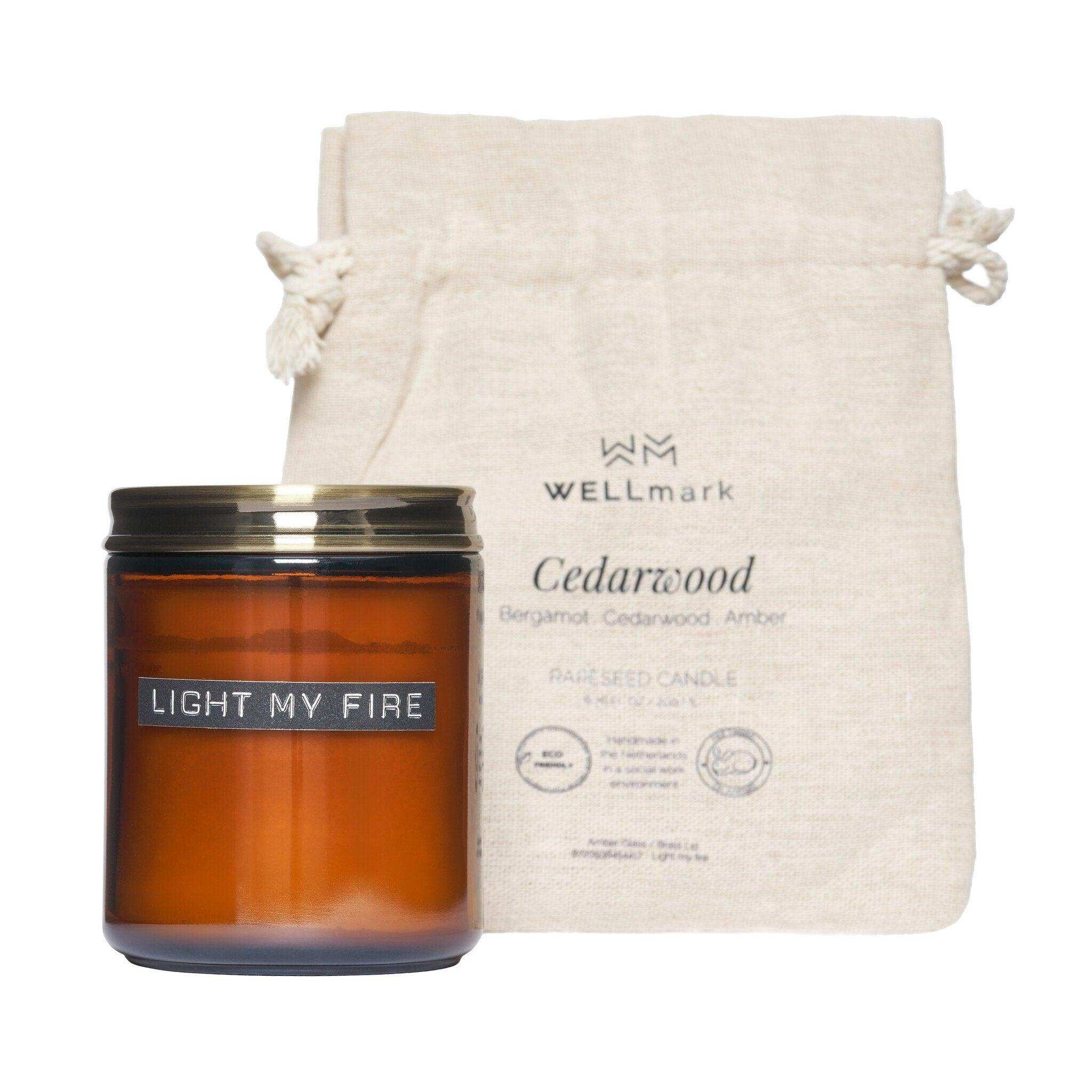 Ontsteek een vlam van comfort en stijl in je huis met de 'Light My Fire' medium geurkaars van Wellmark. Deze sfeervolle kaars, verpakt in een elegant bruin glazen potje met een chique messing dop, vult je ruimte met de rustgevende geur van cedarwood. Elk exemplaar wordt liefdevol geleverd in een katoenen zakje, waardoor het een ideaal geschenk is voor elke gelegenheid.