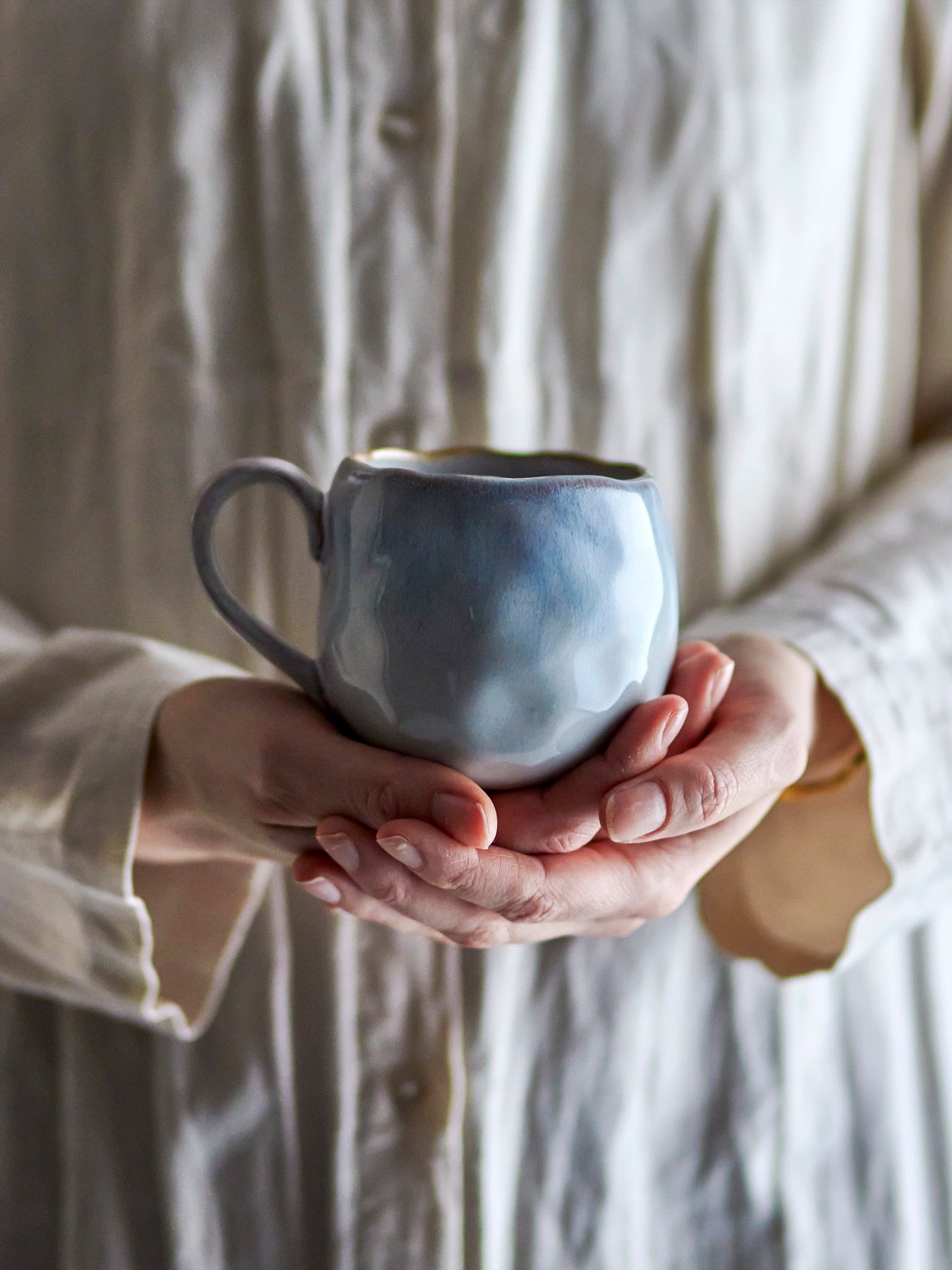 Waarom je de mok aardewerk blauw Estella van Bloomingville wilt hebben: Je dag begint net wat fijner met een mok die kalmte uitstraalt. Estella doet dat met een gelaagd glazuur in blauwtinten met subtiele paarse nuances, precies het soort detail dat je servies persoonlijk maakt. Het compacte formaat en het stevige oor zorgen voor comfortabel drinken, tijdens een korte koffiepauze of een lang theemoment. Dit is zo’n mok die je vanzelf steeds weer van de plank pakt.