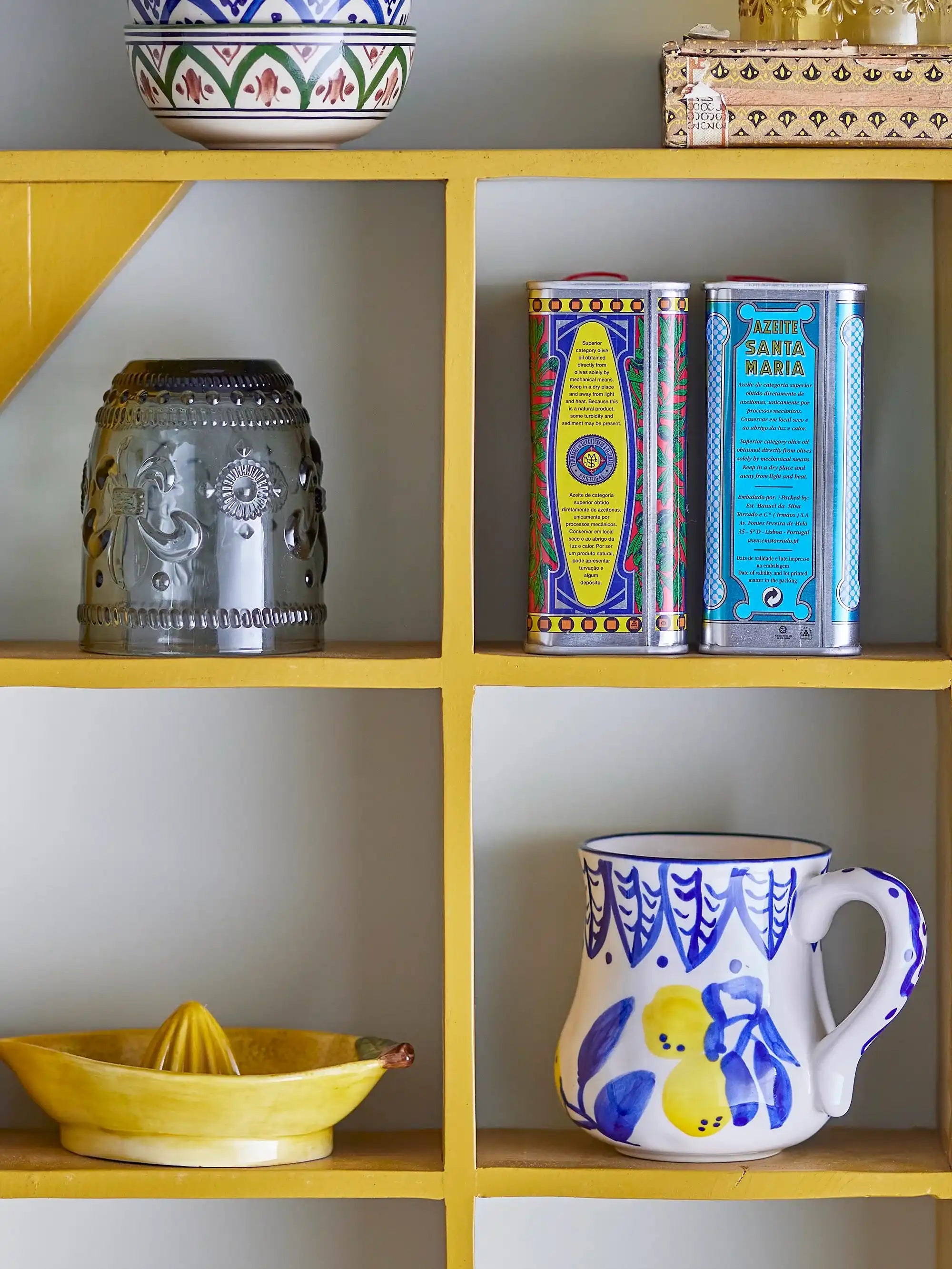 Waarom je de mok van Bloomingville wilt hebben: De Maxima mok brengt de zon van de Middellandse Zee naar je tafel. Het handbeschilderde motief van zongerijpte citroenen straalt in fris geel, met bladeren in een diepe blauwtint die prachtig contrasteert. Elke mok is met de hand afgewerkt; door het glazuur en de ambachtelijke techniek is geen exemplaar hetzelfde. Daarmee geef je jouw koffiepauze een persoonlijke touch die vrolijk stemt, of je nu de dag begint of een verwenmoment tussendoor pakt.