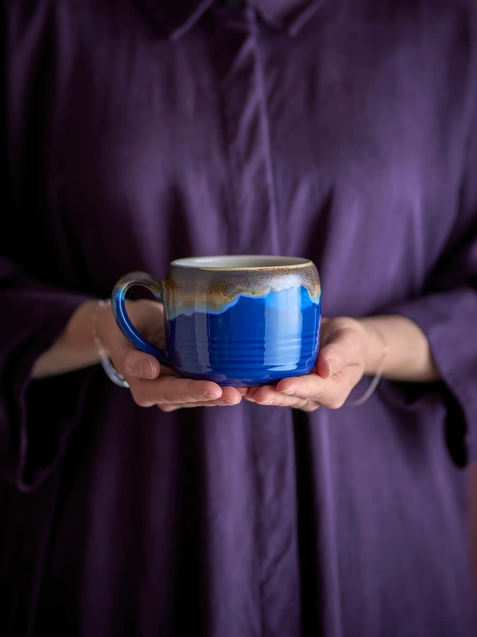 Bijzondere details & materiaal: Deze set van vier mokken is vervaardigd uit stevig aardewerk en voorzien van een levendig blauw-gouden glazuur dat natuurlijk over de mok vloeit. Door het robuuste materiaal blijven je dranken langer warm en kun je rekenen op jarenlang plezier. Met een diameter van 10,5 cm en hoogte van 8 cm liggen ze prettig in de hand en is elke mok royaal bemeten voor thee, koffie of warme chocolademelk.