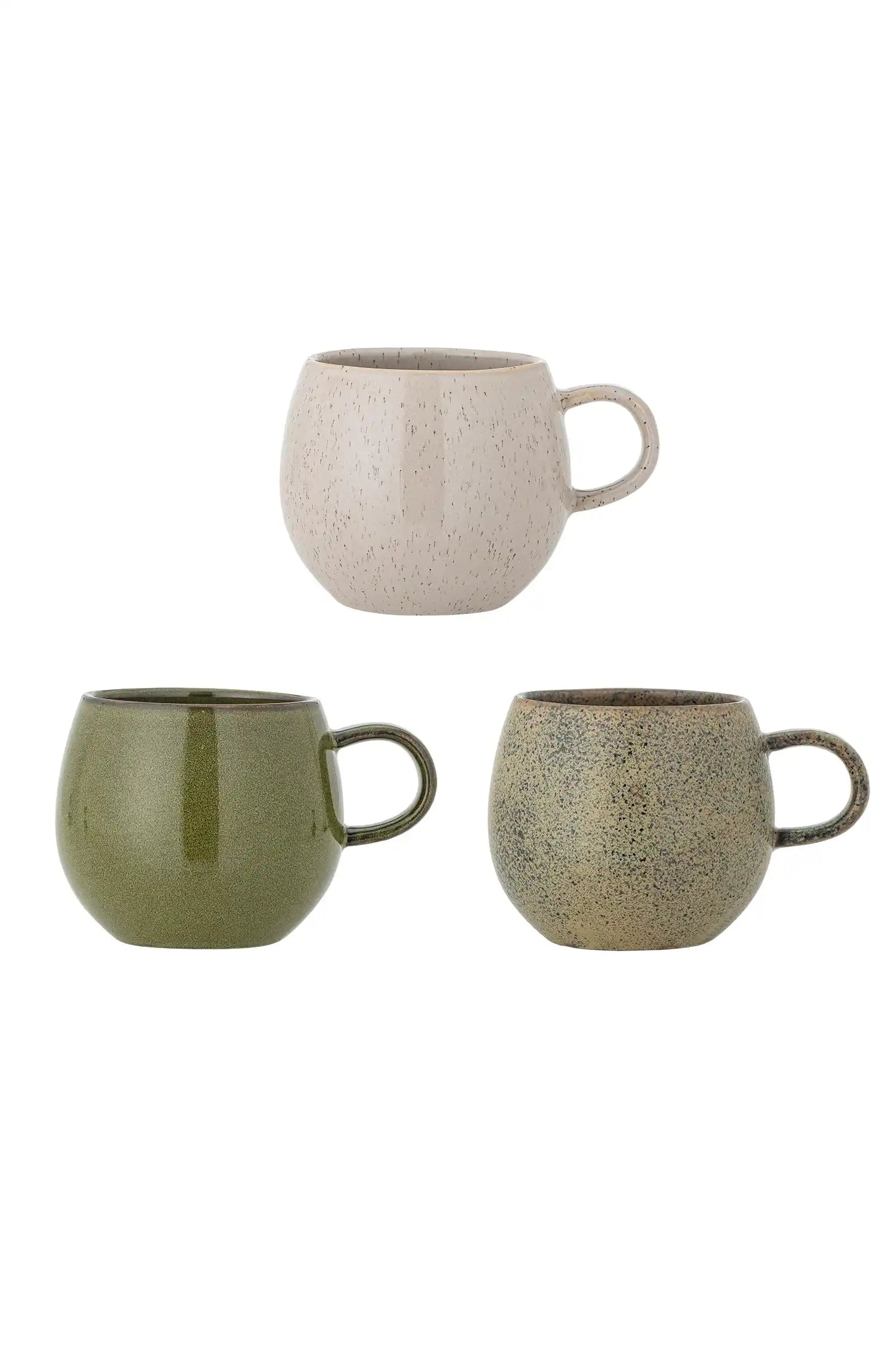 Waarom je deze mok wilt hebben: Met de mok aardewerk groen Addison van Bloomingville haal je direct warmte en stijl in huis. Het verfijnde Scandinavische karakter van deze set van drie mokken tovert je koffiemoment om tot een bijzonder ritueel. De mooie tinten groen, wit en groenbruin zorgen samen voor een speelse twist op tafel.