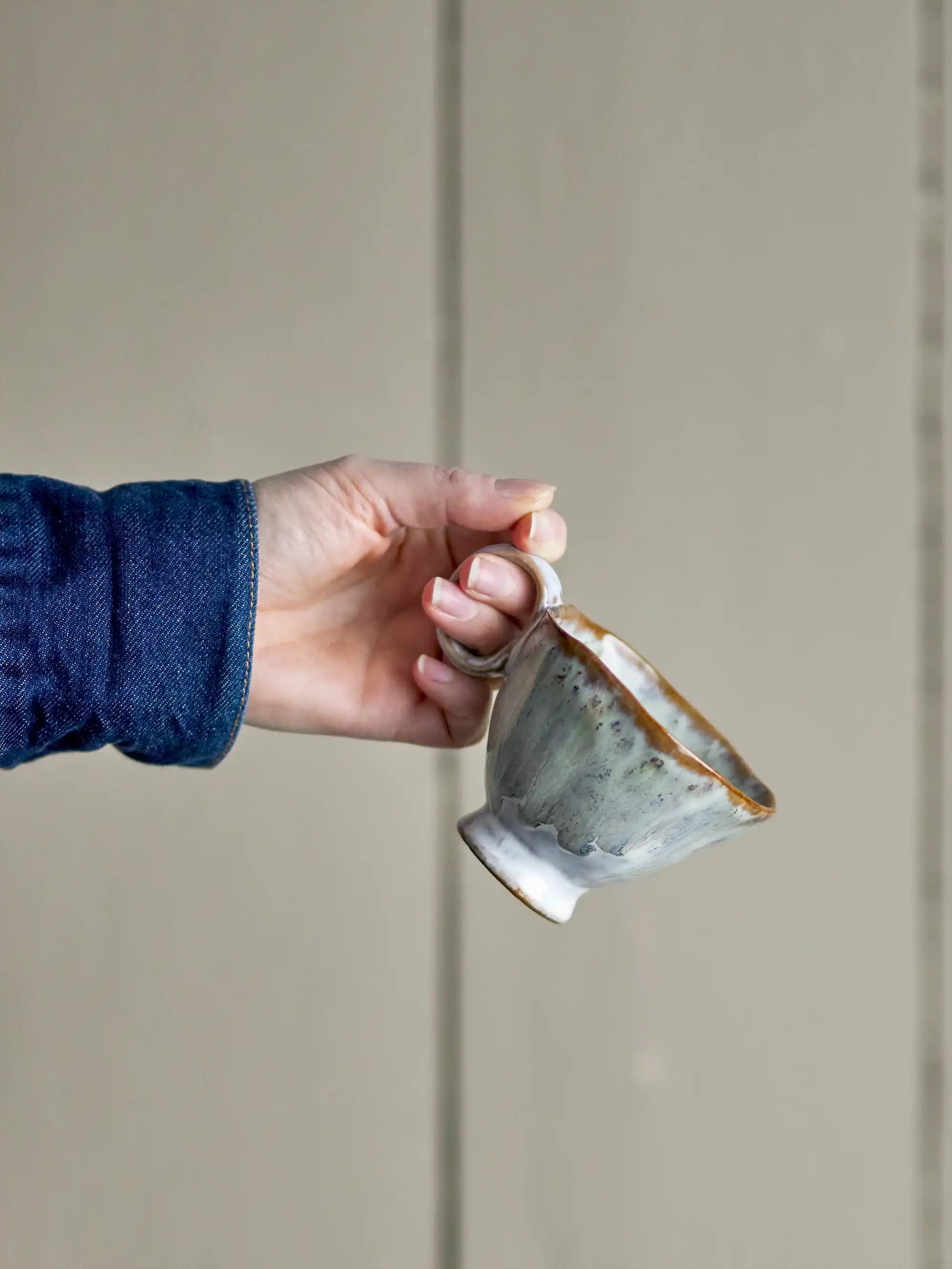 Details & materiaal: De mok is met de hand vervaardigd uit stevig aardewerk en afgewerkt met een reactief glazuur, waardoor elke mok een subtiel eigen karakter krijgt. Met een diameter van 8,5 cm en een hoogte van 7 cm ligt hij comfortabel in de hand en springt het frisse groen mooi in het oog bij elk servies.